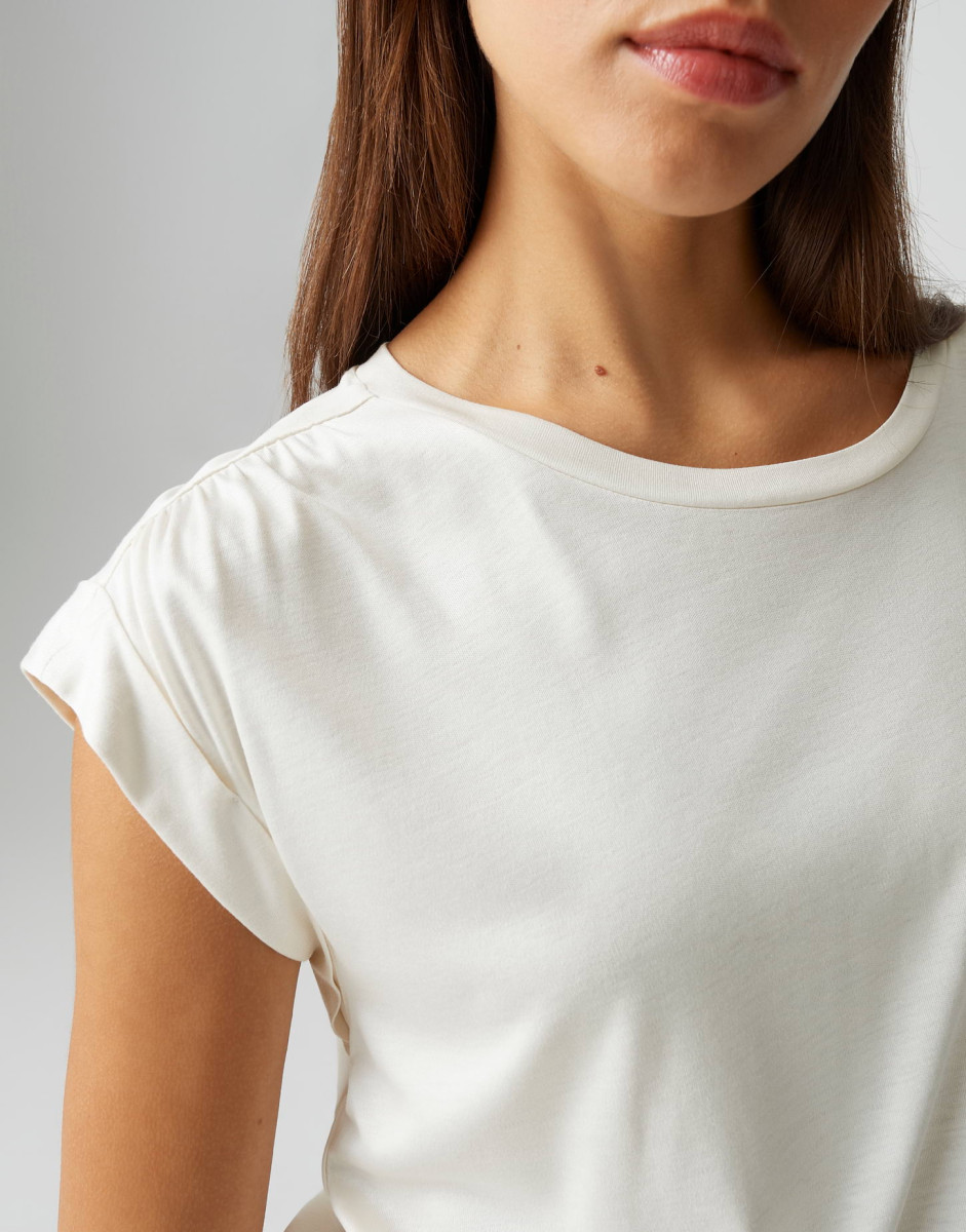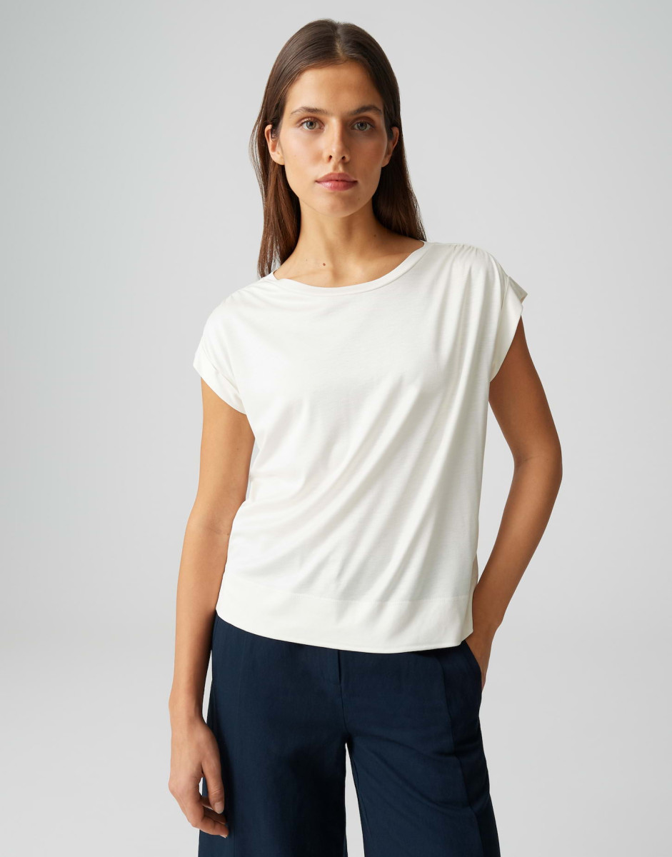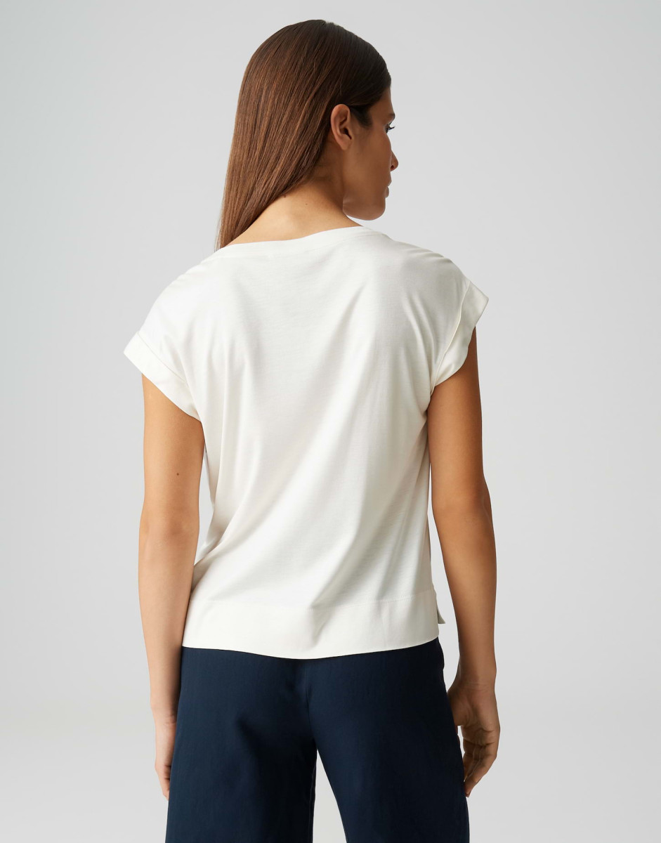 Das Top Sosilla überzeugt mit einer lockeren Passform und einem geraden Schnitt, der für einen entspannten Look sorgt. Die überschnittenen Kurzärmel und der weite Rundhalsausschnitt verleihen dem Oberteil eine moderne Silhouette, während der fließende Fall und der matte Glanz für eine edle Optik sorgen. Mit einer Rückenlänge von ca. 57 cm bietet es leichte Transparenz und angenehmen Tragekomfort, sodass es sich vielseitig kombinieren lässt.Lief.-Art-Nr: 10552912287106