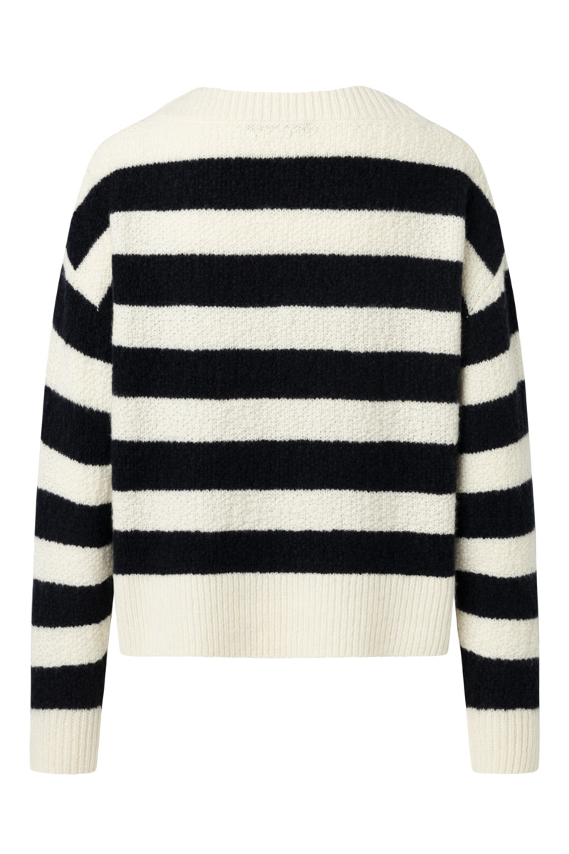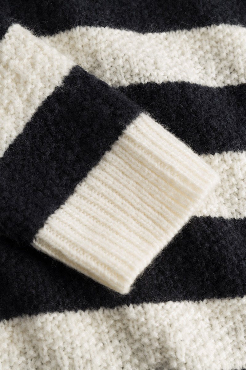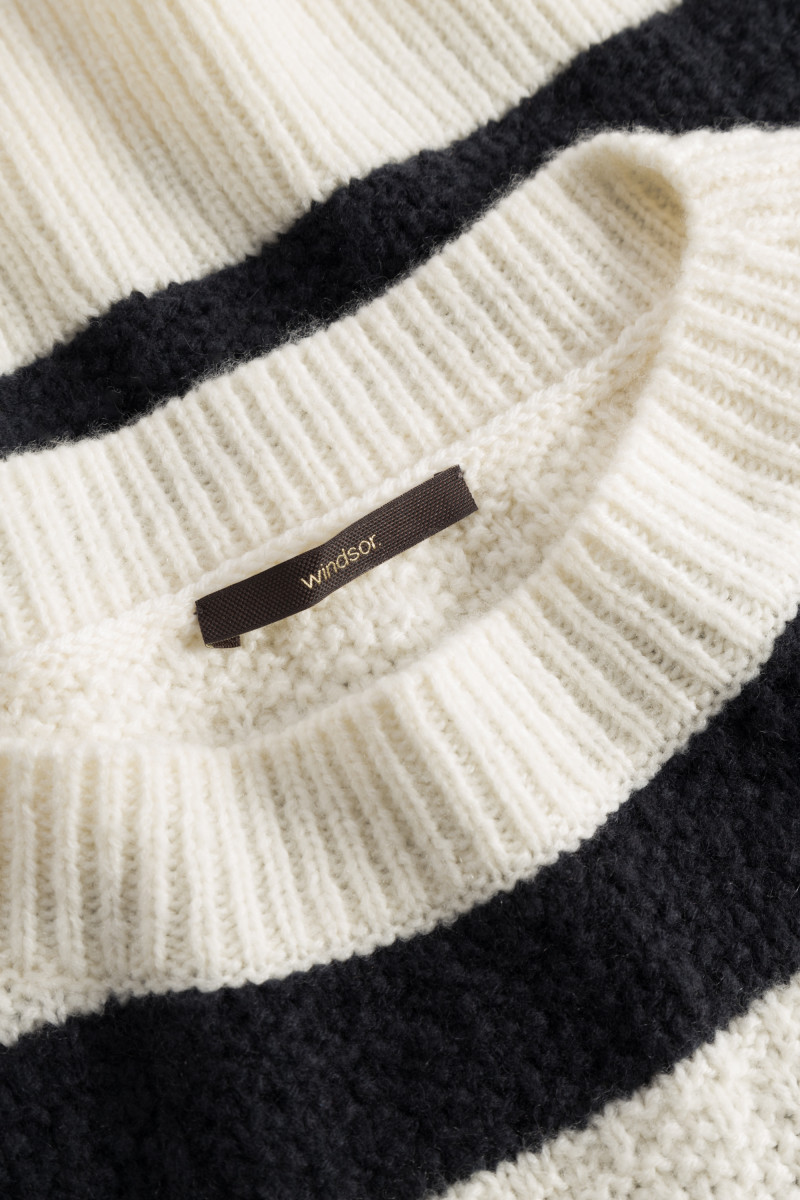 Pullover in Bouclé Optik mit Streifen | Rundhalsausschnitt | Lange Ärmel mit gerippten Bündchen | Überschnittene Schultern | Verstärkter Saumabschluss
