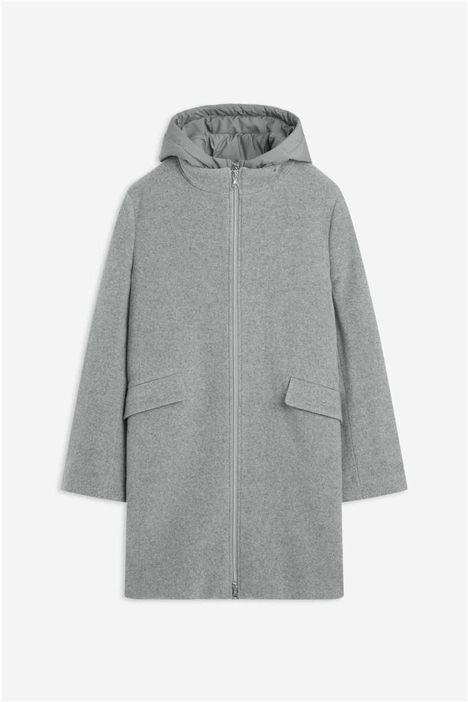 Stehkragen | Herausnehmbare Nylon-Kapuze | Reißverschluss vorne | Pattentaschen vorne | Cashmere