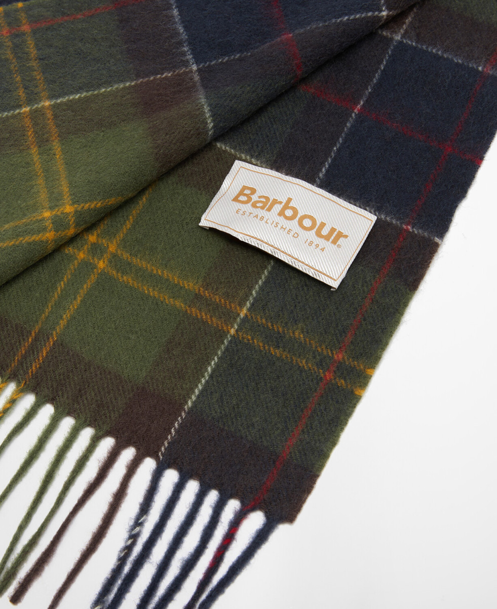 Dieser besonders weiche Schal besteht aus Lambswool mit Cashmere-Anteil. Er präsentiert sich mit dem charakteristischen Tartan-Muster in aktueller Farbgebung. Der Fransensaum lässt eine traditionelle Optik entstehen.