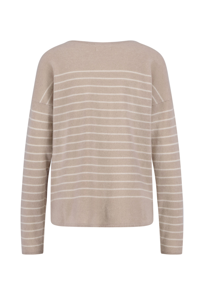 Lockere Passform | Casual-Fit | Cashmere | Streifenmuster | Rundhalsausschnitt | Langarm | Logo-Detail