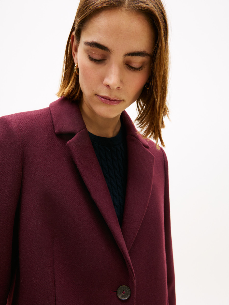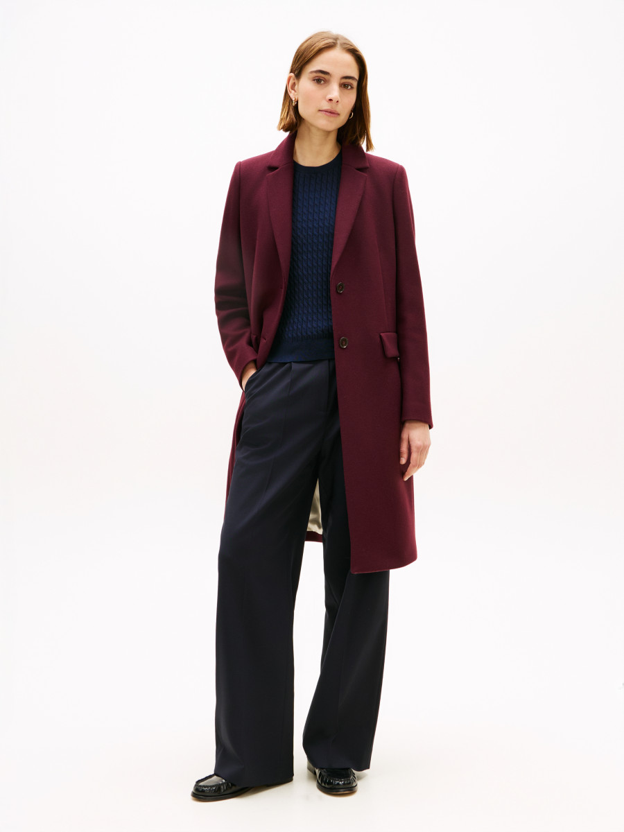 Wollmischung | Stückgefärbt | Revers mit Revers | Einreihig | Knopfverschluss | Zwei Klappentaschen vorne | Vollständig gefüttert | Tommy Hilfiger-Branding