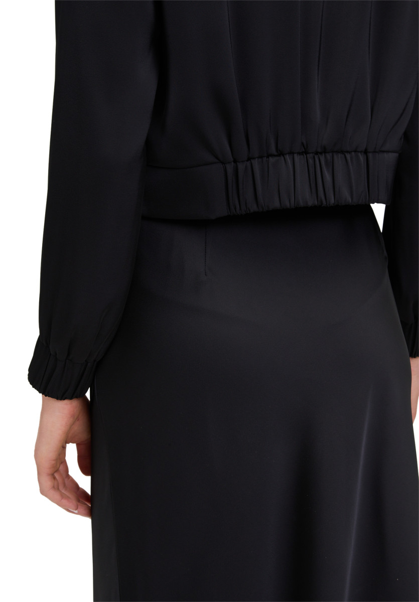 Passform: Lässig | Gesamtlänge: 48 cm | Feinmaterial: Satin | Ärmel: Langarm | Kragen: Stehkragen | Verschluss: Verschlusslos | Muster: Uni | Futter: 100% Polyester