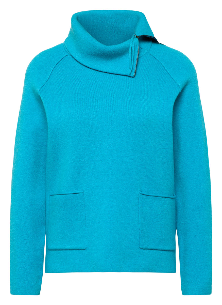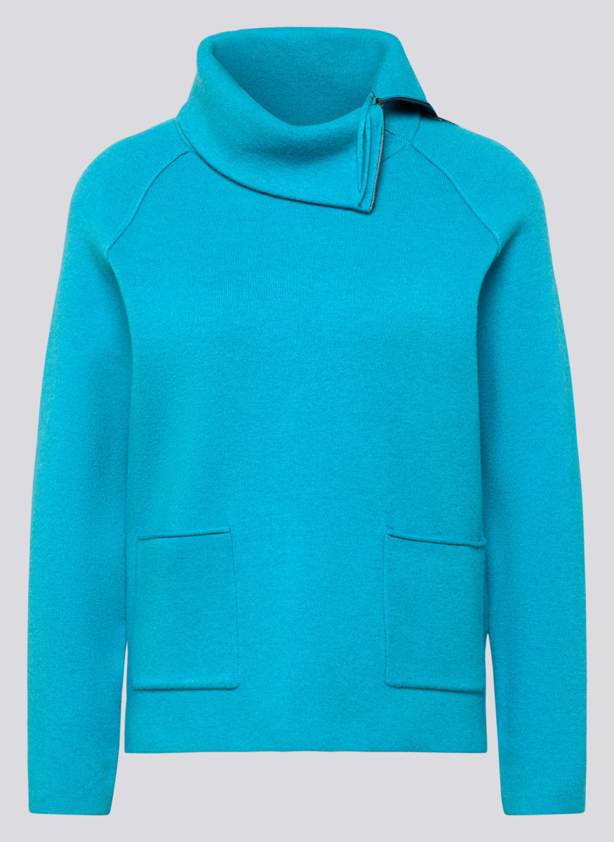 Dieser Feinstrickpullover überzeugt mit sportivem Design und einem lässigen Schnitt. Der leicht asymmetrische Stehkragen mit Reißverschluss setzt einen modernen Akzent. Zwei aufgesetzte Taschen runden den Look praktisch ab. Die weiche, glatte Qualität sorgt für angenehmen Tragekomfort _ ideal für entspannte Tage oder stilvolle Freizeitlooks.