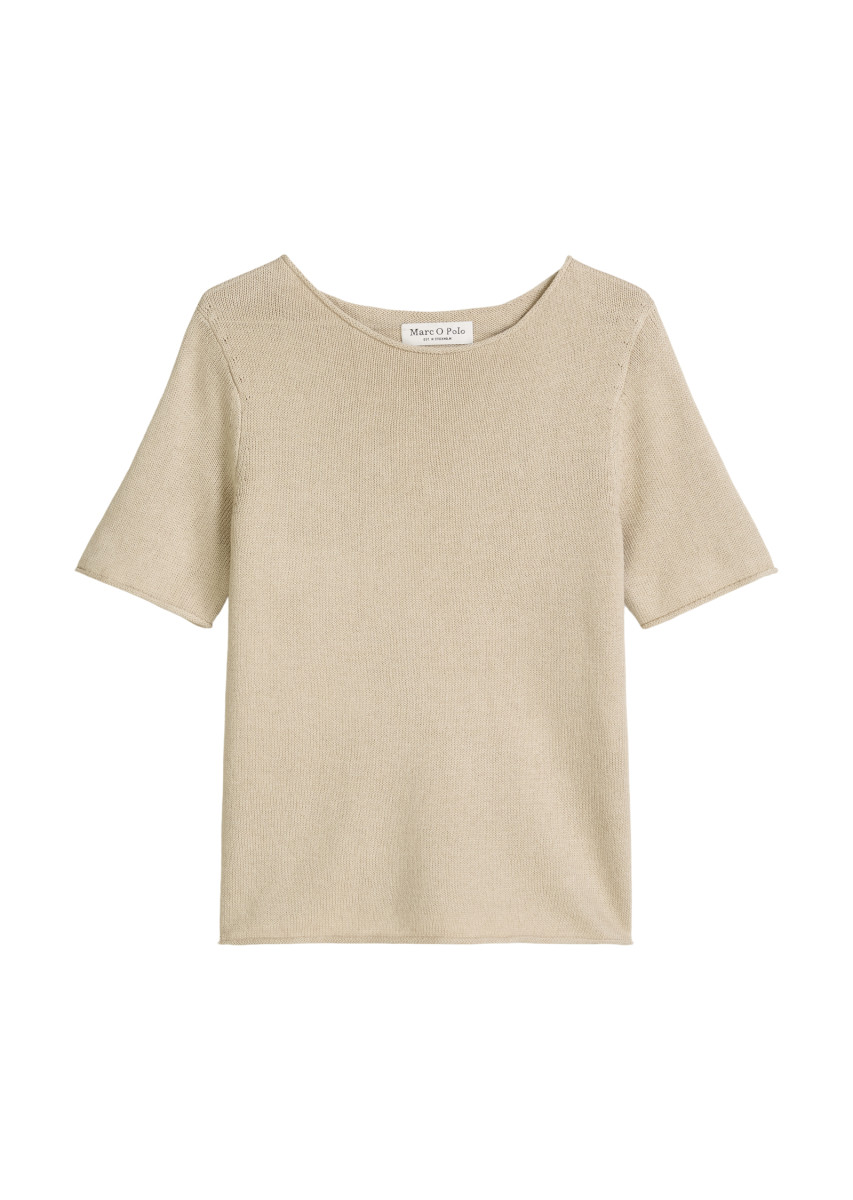 Dieses Fashion-Basic sollte in keinem Kleiderschrank fehlen. Es ist Teil der wichtigen Capsule Wardrobe und kommt immer dann zum Einsatz, wenn man glaubt, nichts zum Anziehen zu haben. Der Kurzarm-Pullover im cleanen Design ist aus einem feinen, hochwertigen Bio-Baumwolle-Leinen-Mix gestrickt und hat ein weiches, unregelmäßiges Maschenbild in Slub-Qualität. Er hat eine feminine Regular-Fit-Passform mit weitem, gerolltem Ausschnitt, kurzen Ärmeln und lässigen Rollkanten am Ärmelabschluss. Der seitlich geschlitzte Saum ist in der Länge leicht verstuft, wobei das Rückenteil dezent verlängert ist. Ein Qualitätsmerkmal sind die in Form gestrickten, nachhaltigen Fully-Fashioned-Details an der Ärmelnaht, die ohne Zuschnitt auskommen und so Garnabfall vermeiden.Lief.-Art-Nr: 5000013111