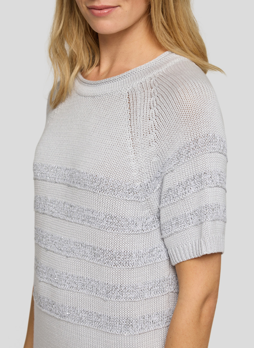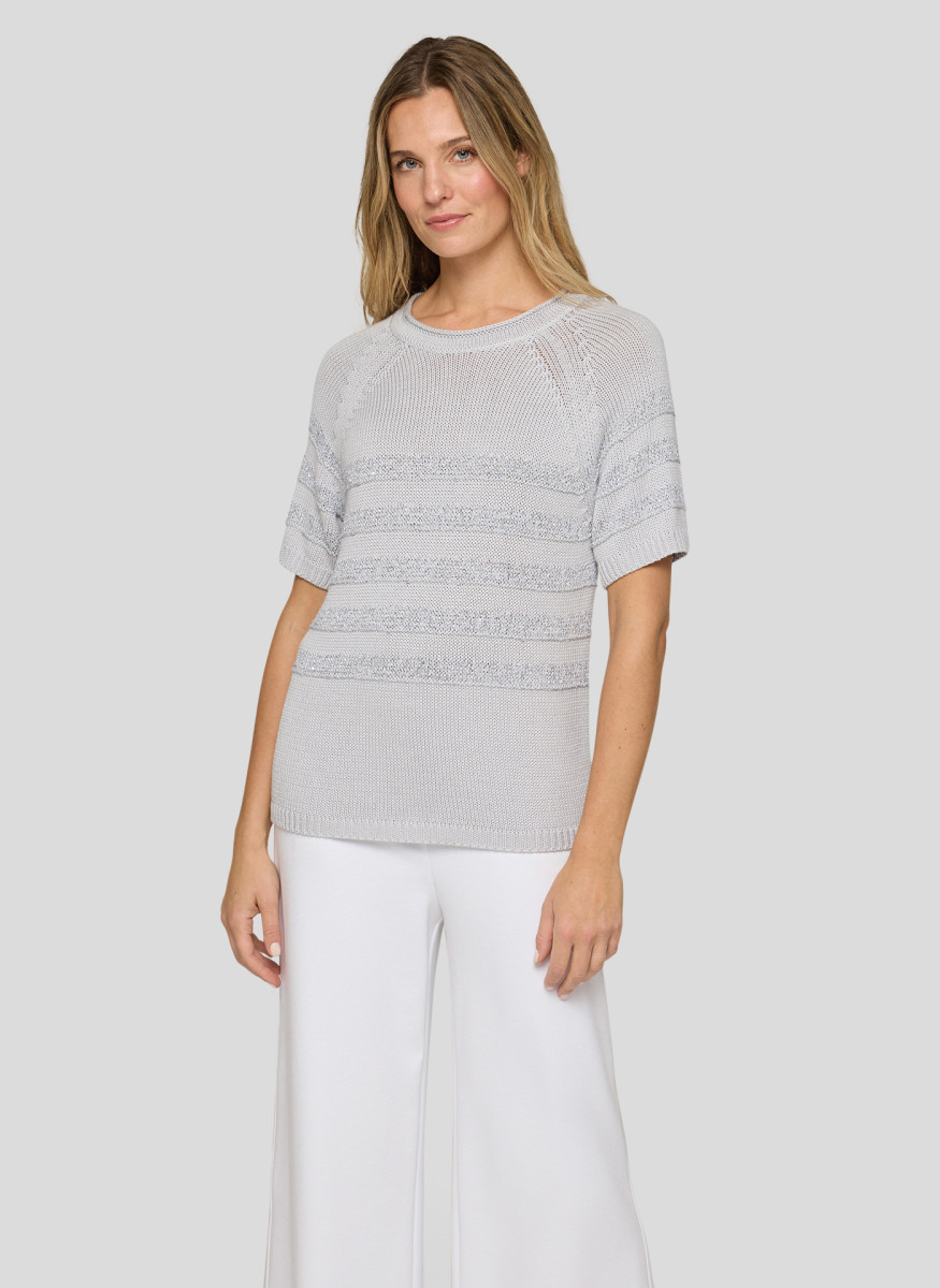 Dieser Pullover kombiniert unterschiedliche Garnarten zu einer besonderen Oberfläche mit feinen Glanzakzenten. Der Baumwollanteil sorgt für ein angenehmes Hautgefühl, während Polyacryl und Polyester Formstabilität und Pflegeleichtigkeit unterstützen. Viskose verleiht zusätzliche Weichheit, und Maguey- sowie Polyamidfasern erhöhen Strapazierfähigkeit und Haltbarkeit. Die kurzen Raglanärmel und die dezent schimmernden Strukturstreifen machen das Modell zu einem vielseitigen Begleiter für stilvolle Alltagslooks. Strukturstrick mit Glanzeffekten. Kurze Raglanärmel. Rundhalsausschnitt. Weicher Materialmix. Formstabil und pflegeleicht.Lief.-Art-Nr: 56-117611