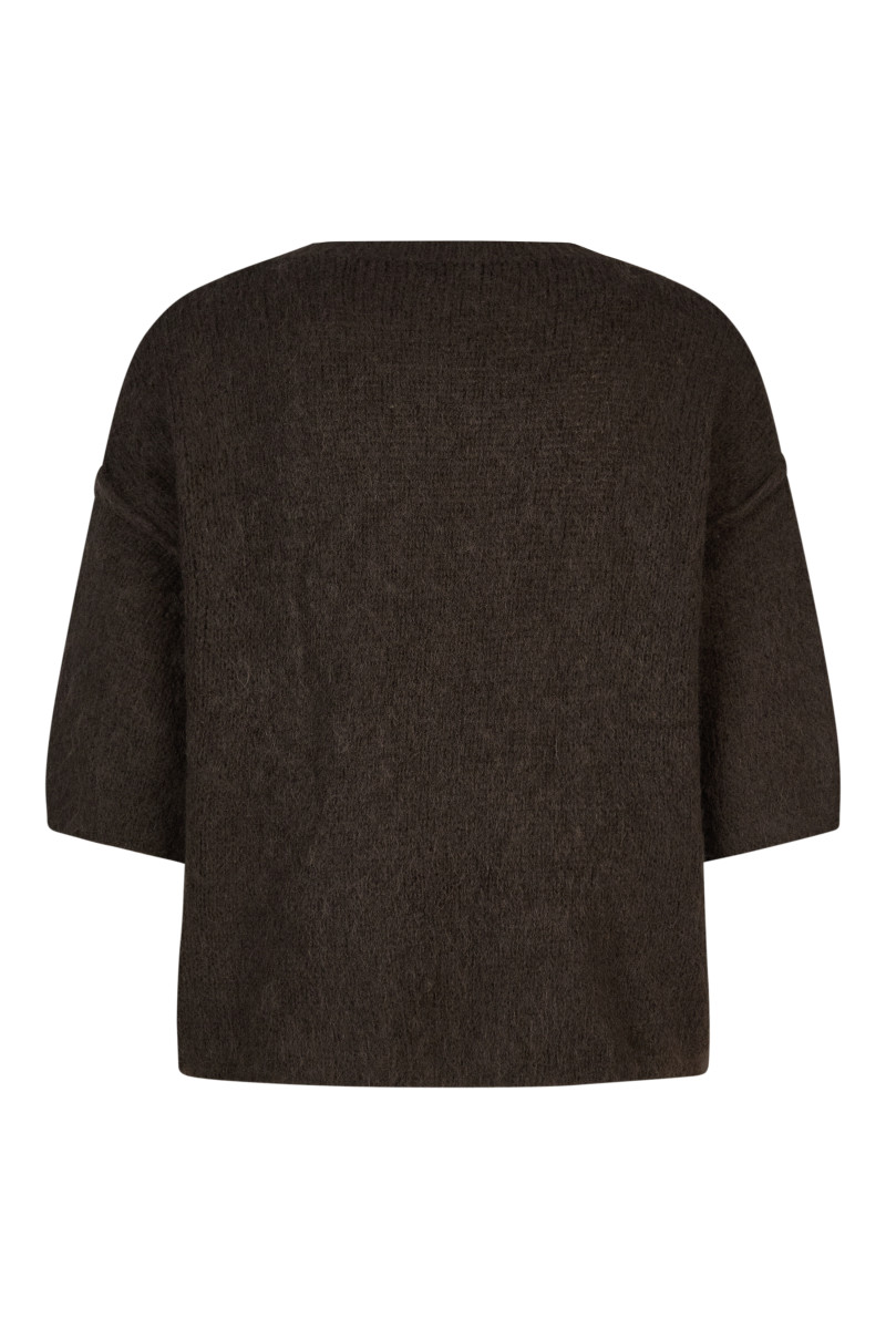 Dieser modische Strickpullover mit kurzem Arm ist ein vielseitiges Basic für Ihre Garderobe. Durch seine kuschelige, "fuzzy" Struktur und den schlichten Schnitt lässt er sich elegant zu Röcken oder lässig zu Hosen kombinieren. Ob solo getragen oder als Layering-Piece unter einer Jacke – dieser Pullover verleiht jedem Outfit eine mühelos stilvolle Note. Ein zeitloser Pullover für die Übergangszeit und kühlere Sommertage.