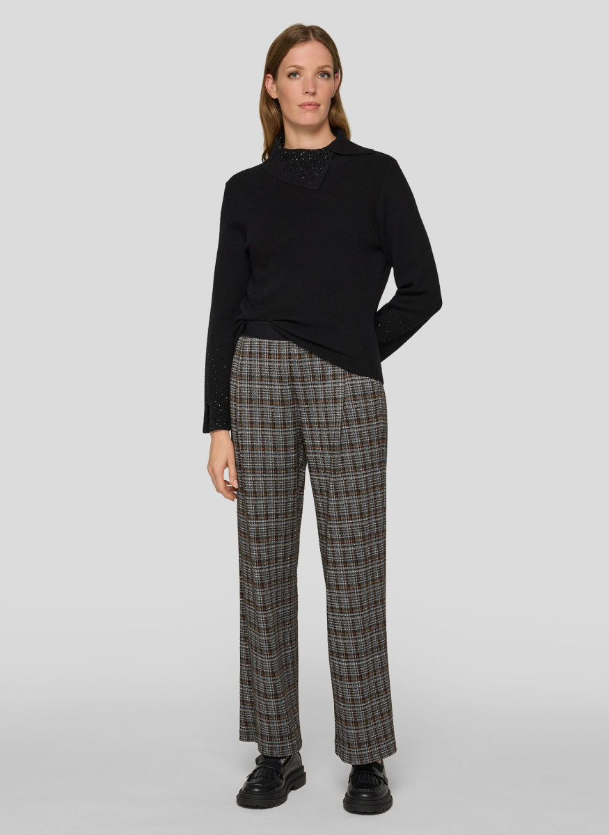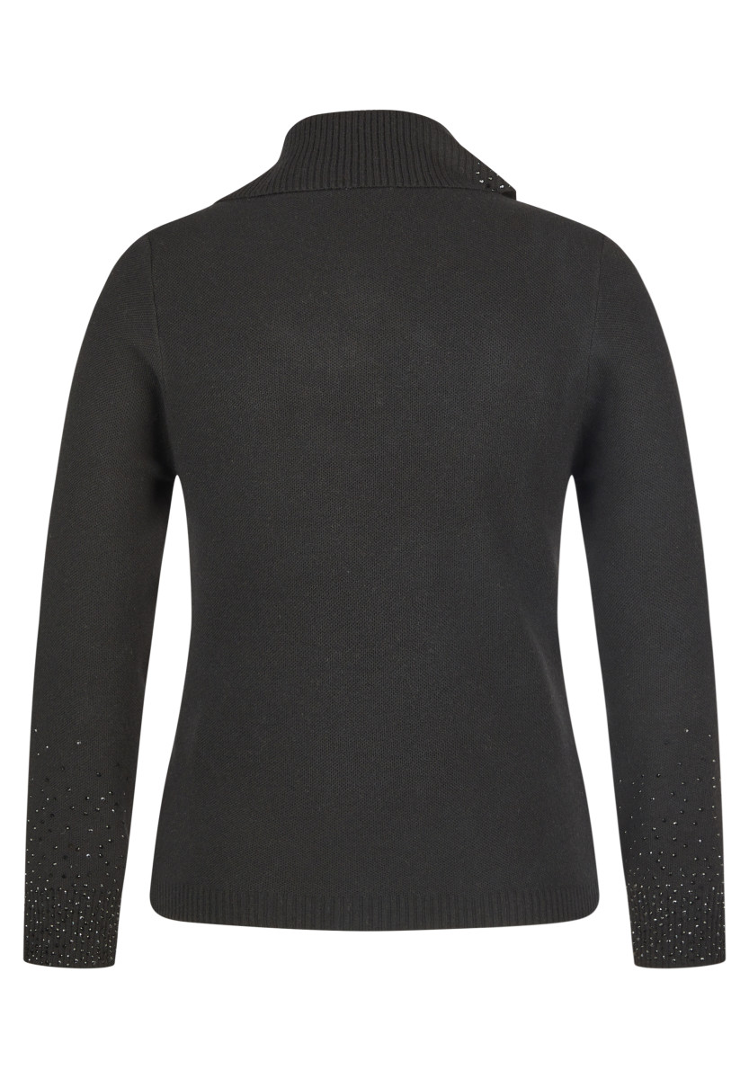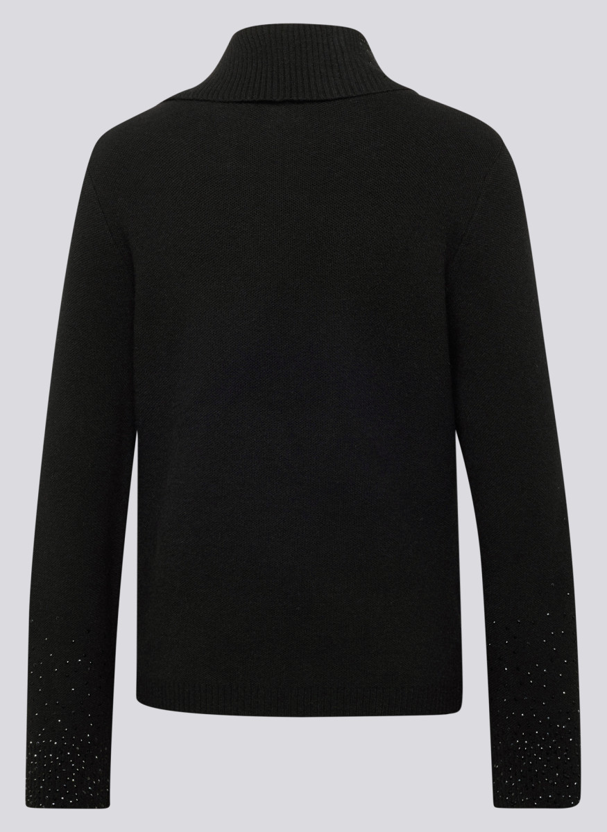 Stehkragen | Langarm | Strickware | Material-Mix | Strasssteine | Rippbündchen | Schlitz-Detail am Ärmel