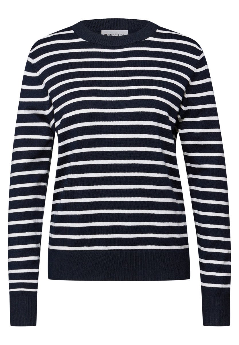 Der gestreifte Pullover von Street One präsentiert sich mit Rundhals, Langarm und einem klassischen Streifenmuster – maritim inspiriert und vielseitig kombinierbar. Der weiche Viskosemix mit Rippstruktur an Bund und Bündchen macht ihn zum angenehmen Allrounder. Entscheide Dich für diesen Pullover, wenn Dir gemütliche Looks mit Muster gefallen.Lief.-Art-Nr: A303567