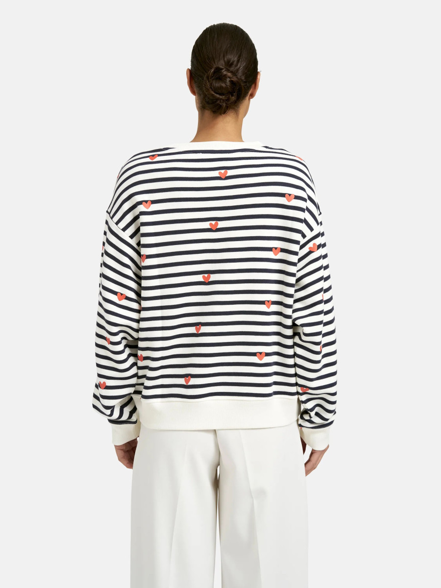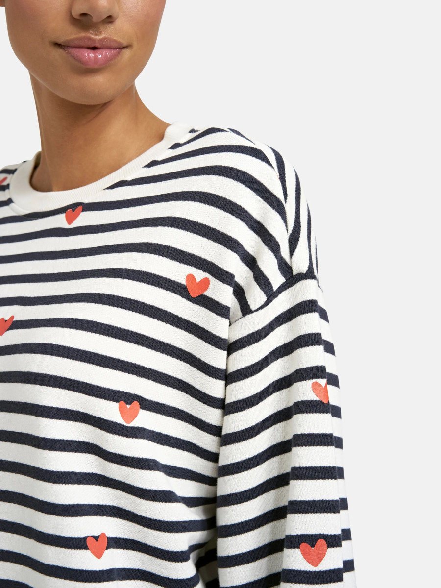 Der Damen Pullover präsentiert sich in einem entspannten Relaxed-Fit mit charmantem Herz- und Streifenmotiv. Er lässt sich vielseitig kombinieren und eignet sich sowohl für lässige Freizeitlooks als auch für gemütliche Abende. Eine saubere Verarbeitung sorgt für angenehmen Tragekomfort und eine zuverlässige Passform im Alltag.Lief.-Art-Nr: 0226-0223-S