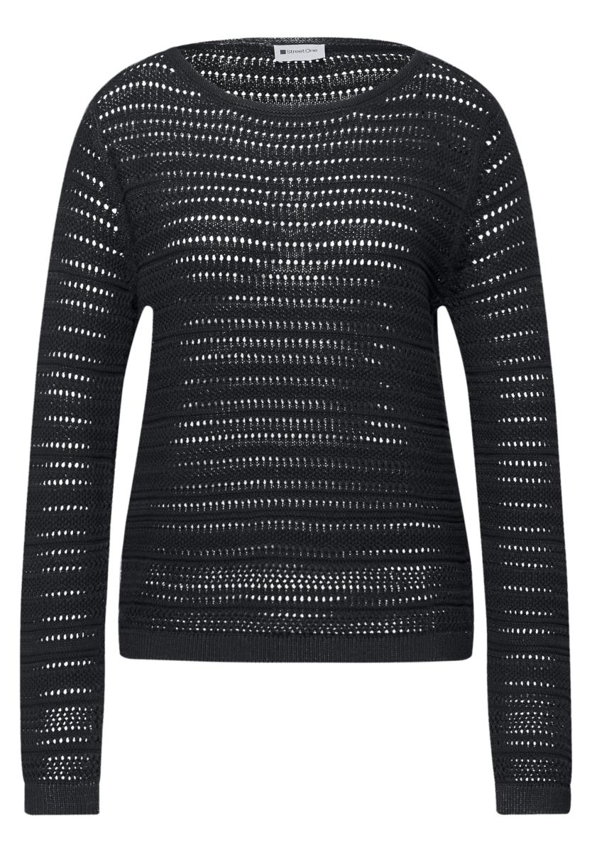 Dieser Strukturpullover von Street One für Damen überzeugt mit einem leicht durchscheinenden Lochmuster aus reiner Baumwolle. Der U-Boot-Ausschnitt verleiht dem Design einen klassischen Look, während die langen Ärmel den Look abrunden. Die Unifarbe lässt sich vielseitig kombinieren und bringt das Muster schön zur Geltung. Ein stilvoller Strickpullover, ideal für luftige Casual-Outfits.Lief.-Art-Nr: A303820