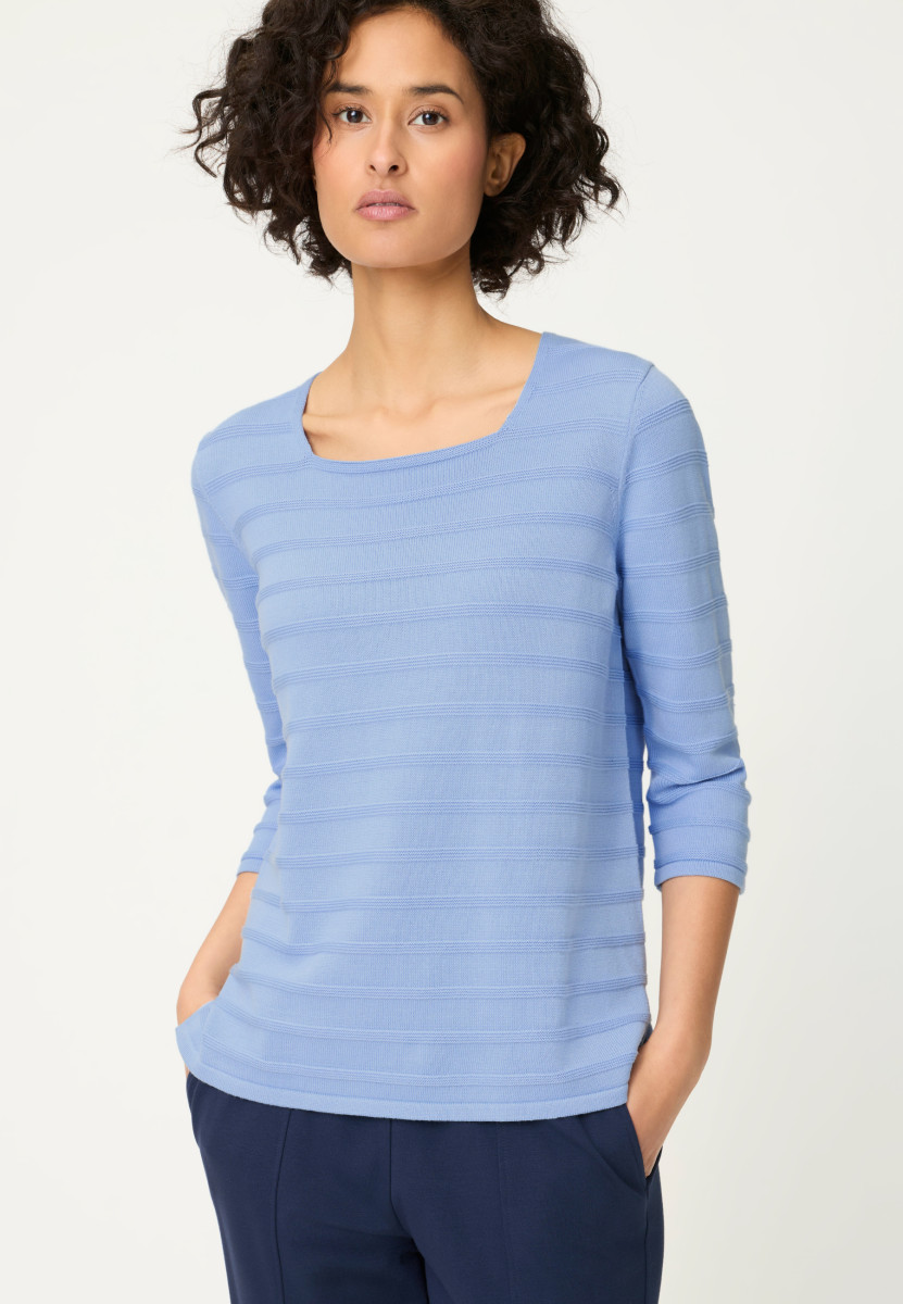 Schlicht, modern und feminin: Dieser Pullover in der Olsen-Passform „Henny“ überzeugt durch seinen modischen Karree-Ausschnitt, der das Dekolleté elegant in Szene setzt. Dezente, quer gestrickte Streifen verleihen dem Design Struktur und einen sportiv-eleganten Charakter, während die 3/4-Ärmel für eine leichte, frische Note sorgen und den Pullover zu einem idealen Begleiter für die Übergangszeit machen. Mit seiner klaren Linienführung und kleinen Seitenschlitzen lässt er sich vielseitig kombinieren – von lässig zur Jeans bis elegant mit Rock oder Stoffhose; Länge ca. 60 cm.Lief.-Art-Nr: 11004825