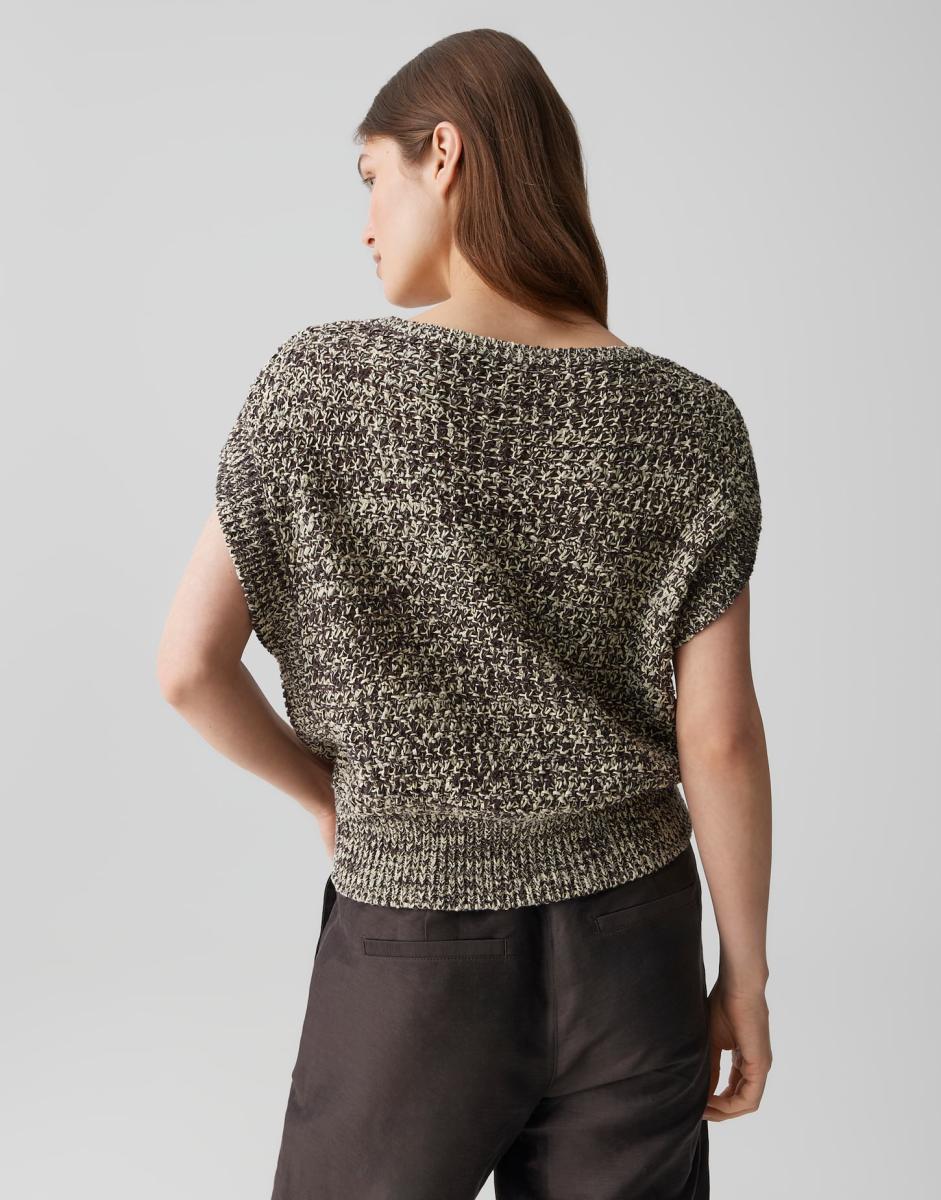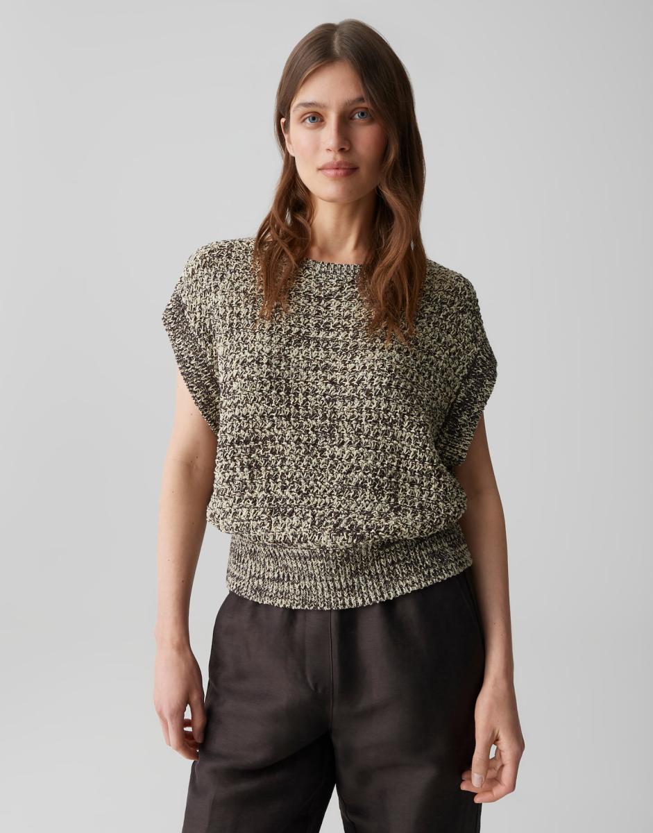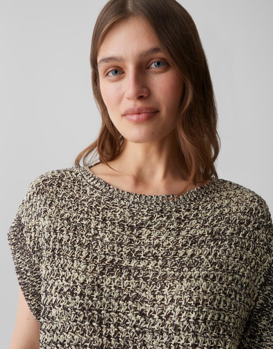 Zwischen T-Shirt Ersatz und modernem Westenersatz positioniert sich dieser Pullunder PODENNA als überraschend vielseitiges Key-Piece. Melange Effektgarn und die griffige Strickstruktur verleihen ihm eine besondere Tiefe und laden zu unerwarteten Kombinationen ein.
