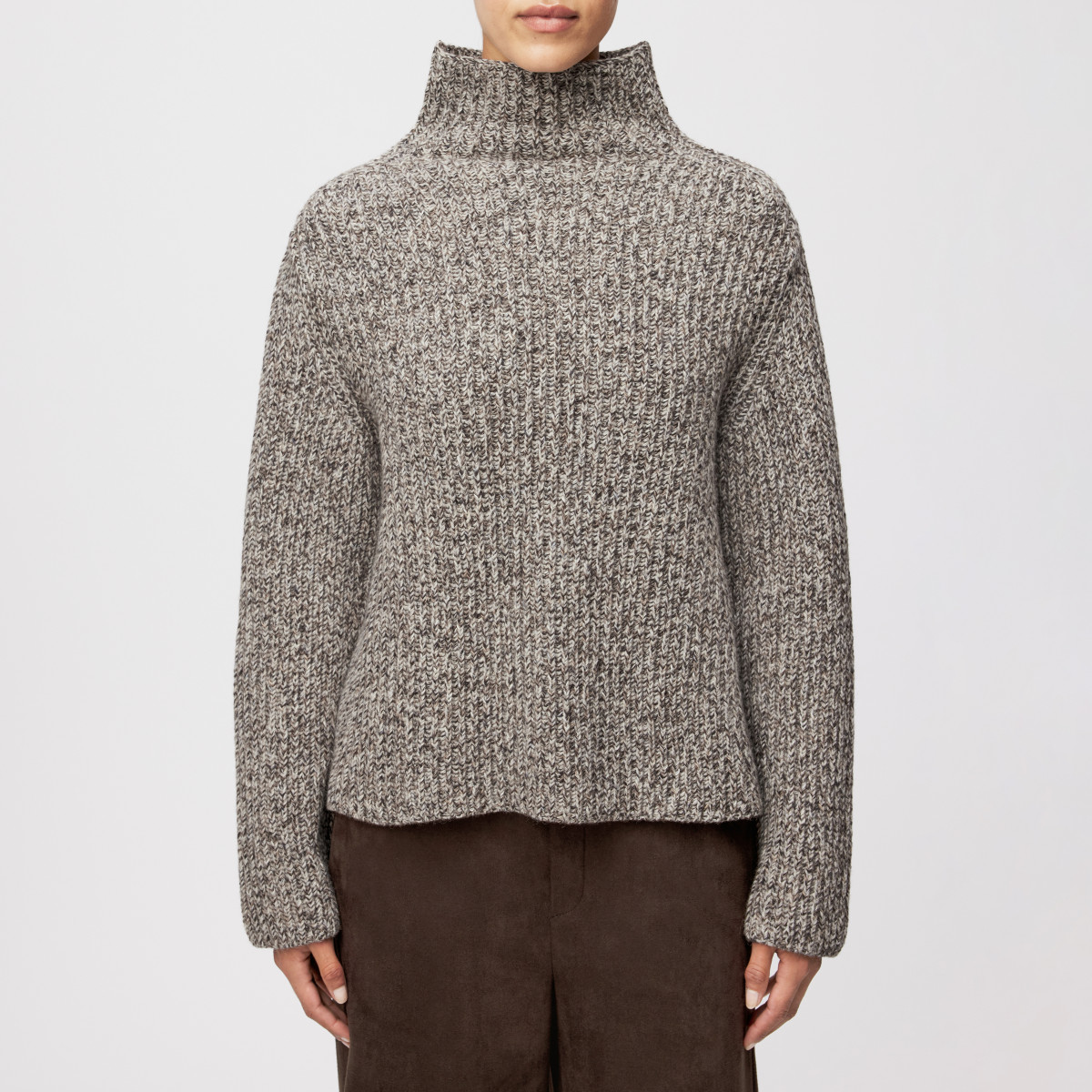 VARISA ist ein gerade geschnittener Rollkragenpullover. Die seitlichen Schlitzen am Saum sorgen für mehr Bewegungsfreiheit und eine moderne Passform. Der hohe Kragen unterstreicht das klare Design. Der Materialmix aus Wolle und Baumwolle vereint natürliche Wärme mit weichem Tragegefühl. Baumwolle sorgt für Atmungsaktivität, während Wolle temperaturausgleichend wirkt.