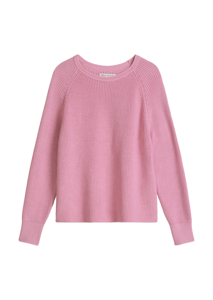 Strickteile sind echte Styling-Talente, ob schlicht und pur kombiniert oder spannend mit gemusterten Unterteilen. Sportlich-eleganter Rundhals-Pullover mit lässigen Raglanärmeln und klassischem Half-Cardigan-Maschenbild. Das Garn ist soft, kompakt und aus reiner, zertifizierter Bio-Baumwolle; angenehm auf der Haut und edel im Look. Besonders hervorzuheben sind die moderne Kragenverarbeitung und die formgerechte Fully-Fashioned-Verarbeitung am Armloch – durch Mindern der Maschen entsteht ein fester Rand, sodass der Arbeitsschritt des Zuschneidens entfällt und Garnabfall vermieden wird.Lief.-Art-Nr: 5000014198