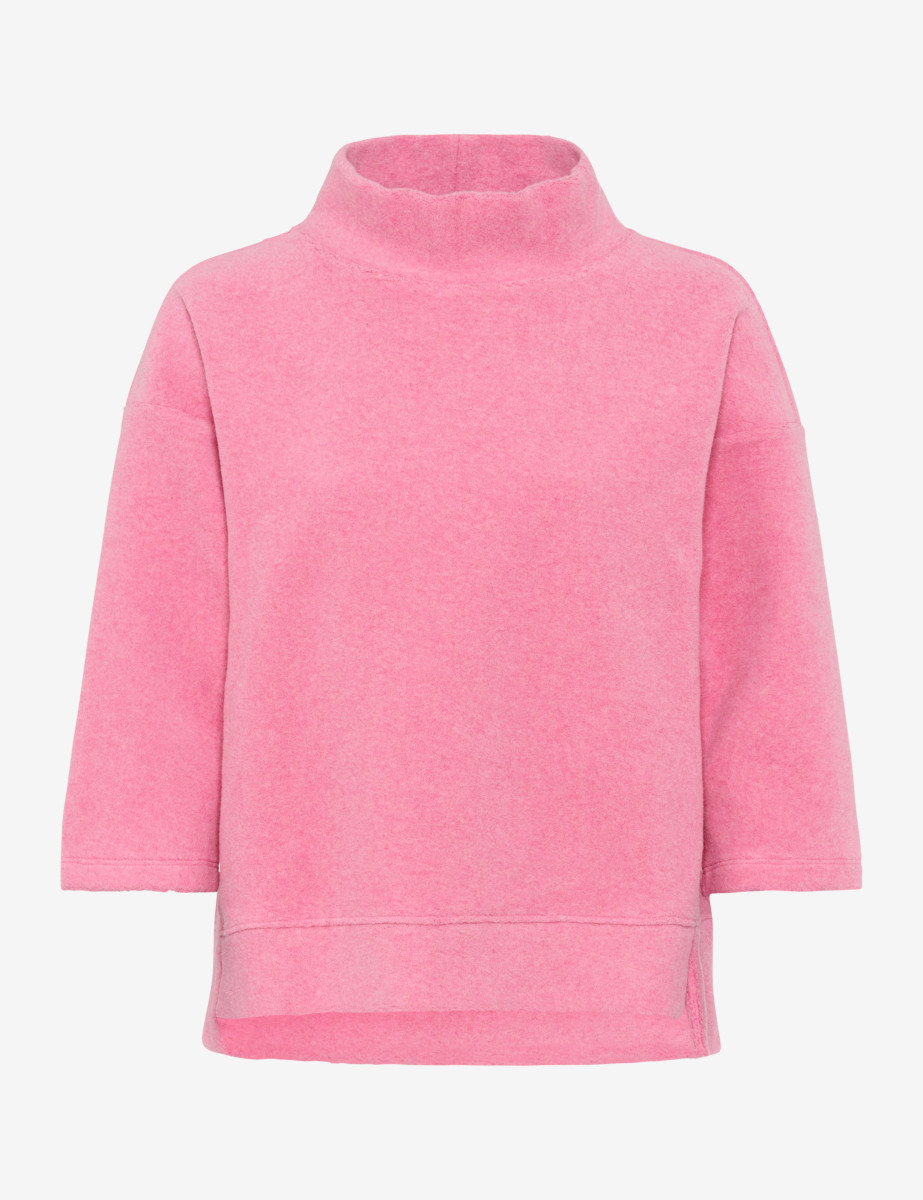 Lässige Modernität trifft auf Komfort: Das Sweatshirt im STYLE BO L steht für einen entspannten und zugleich stilbewussten Look. Mit seiner oversized Silhouette, den überschnittenen Schultern sowie dem angesagten Stehkragen vereint diesem Sweater modische Nonchalance mit markanter Linienführung. Raffinierte Details wie feine Saumschlitze, einer femininen 3/4-Ärmellänge und ein spannender Melange-Effekt machen den Damen-Pullover zum vielseitigen Highlight für urbane Outfits. Der Mix aus hautsympathischer Baumwolle und funktionalem Polyester sorgt für angenehmen Tragekomfort und bewahrt die Form auch nach vielen Wäschen. Dank der hochwertigen Jersey-Qualität erhält der Sweater eine glatte, geschmeidige Oberfläche, bleibt strapazierfähig und begeistert mit trendsicherer Optik.