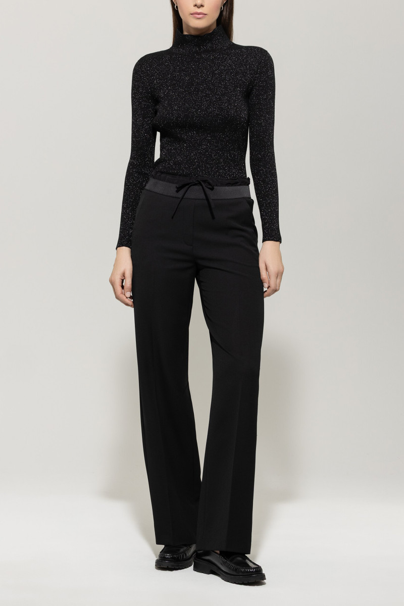 Schmal geschnittener Pullover mit angeschnittenem Kragen aus elastischem Woll-Mix. Das eingearbeitete Glanzgarn verleiht dem Pullover einen glamourösen Touch. Unser Model ist 178 cm groß und trägt Größe 36. Obermaterial: 54% Viskose, 25% Polyamid, 9% Wolle, 6% Polyester, 6% Polyester metallisiert Handwäsche
