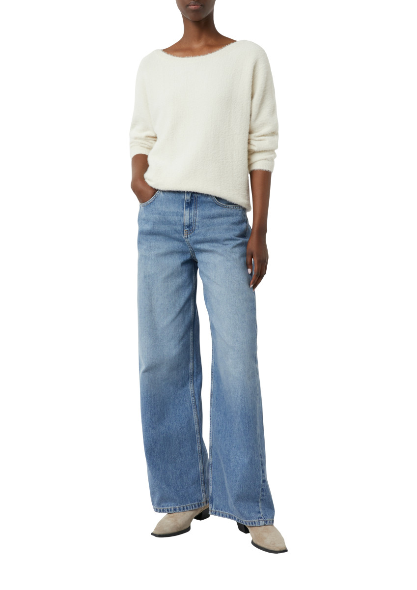 Der weite Rundhalsausschnitt sorgt für einen femininen Touch, während das schlichte Design vielseitig kombinierbar bleibt – perfekt für Büro, Freizeit oder entspannte Tage zu Hause.