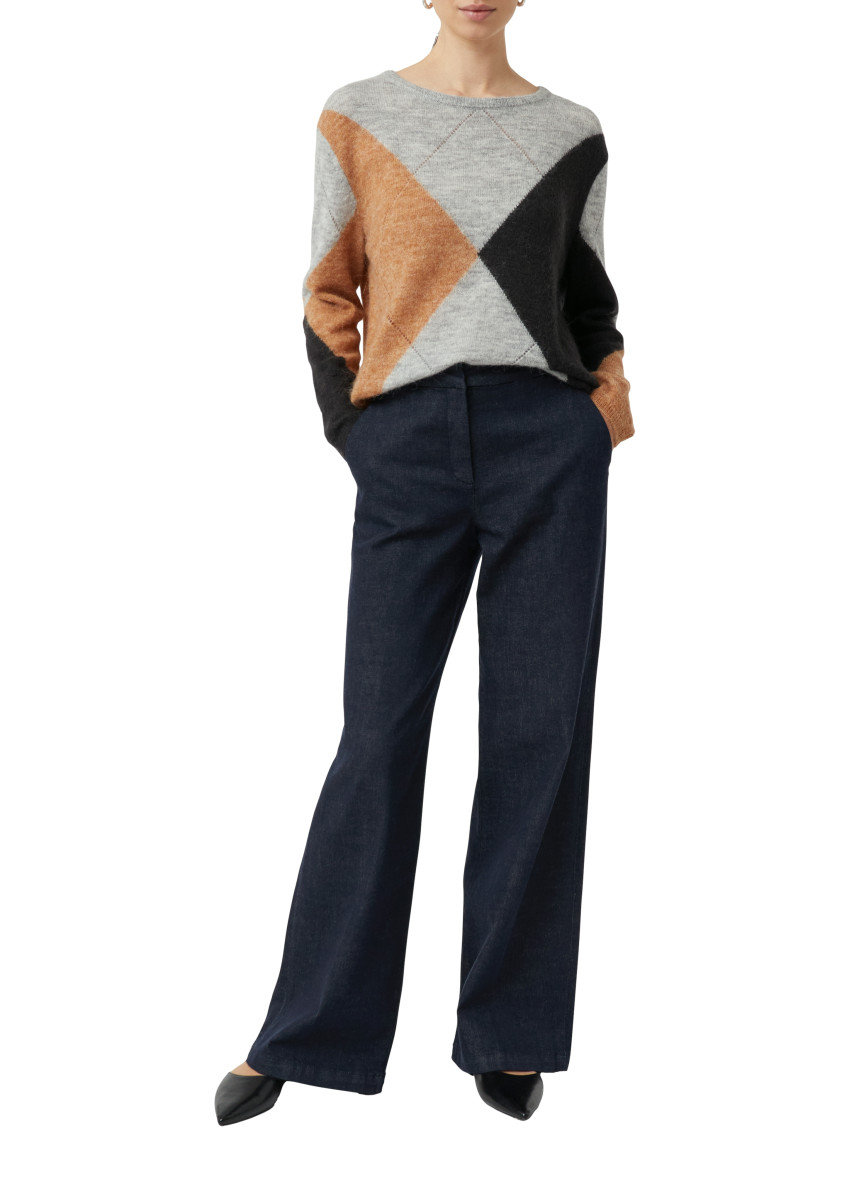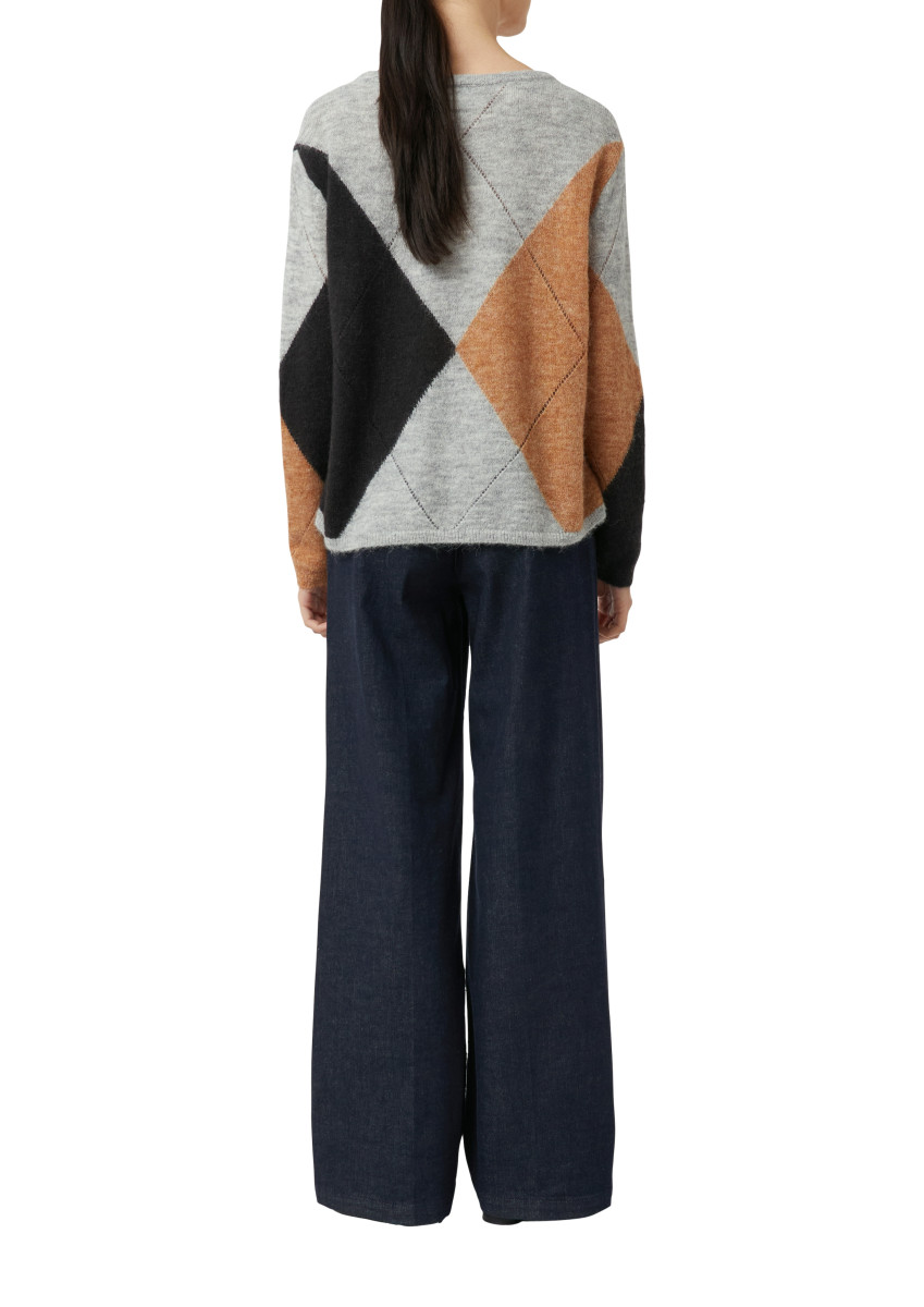 Rundhalsausschnitt | Langarm | Strick | Argyle-Design | Saum: Rippblende | Verkürzt | Relaxed Fit