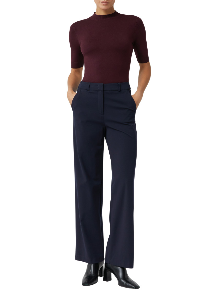 Eleganter Feinstrick-Pullover mit raffiniertem Stehkragen und verlängertem Kurzarm für einen modernen Look. Die Slim-Fit-Passform schmeichelt Ihrer Silhouette, während die weiche, elastische Qualität optimalen Tragekomfort garantiert. Hochwertige Rippblenden an Ausschnitt, Ärmeln und Saum setzen stilvolle Akzente. Ein vielseitiges Basic-Piece, das sich perfekt für luftiges Layering eignet.
