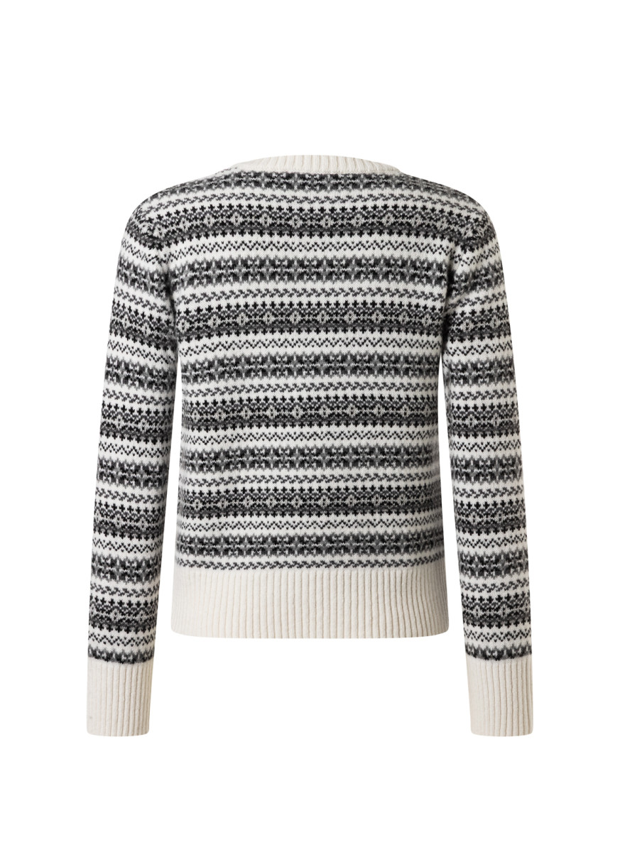 Setze stilvolle Akzente an kalten Tagen mit diesem hochwertigen Strickpullover im traditionellen Fair-Isle-Design. Die harmonische Kombination aus Schwarz-, Grau- und Naturtönen verleiht dem Modell einen zeitlosen Look. Der gerippte Rundhalsausschnitt, sowie die breiten Rippbündchen an Saum und Ärmeln sorgen für optimalen Sitz und Komfort. Gefertigt aus einem weichen, wärmenden Material-Mix, bietet dieser Pullover nicht nur modische Raffinesse, sondern auch ein kuscheliges Tragegefühl – perfekt für Herbst und Winter.