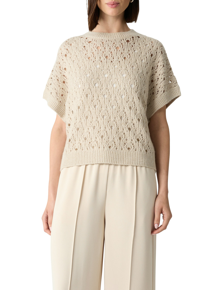 Strickpullunder mit offener Struktur und Pailletten- & Glitzergarn-Highlights