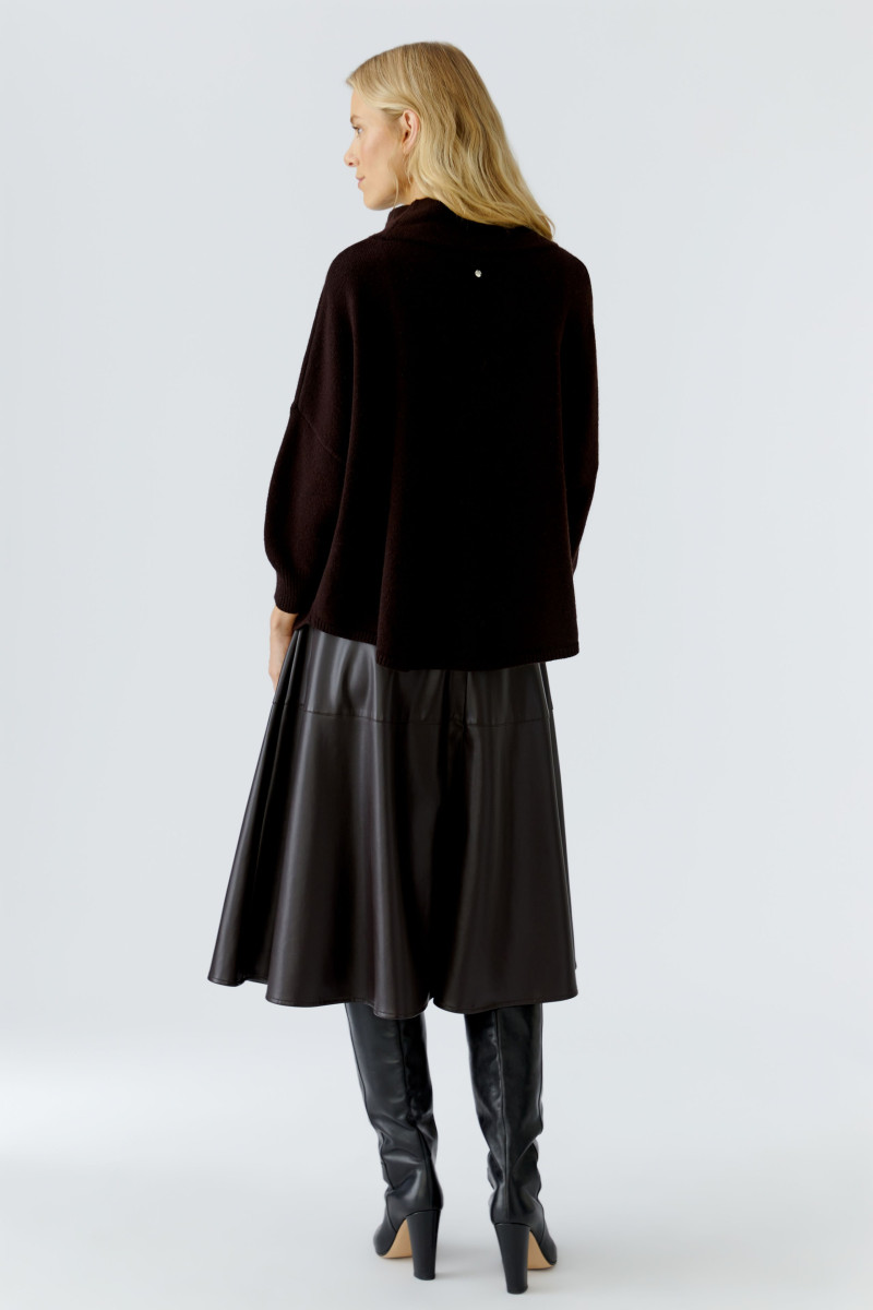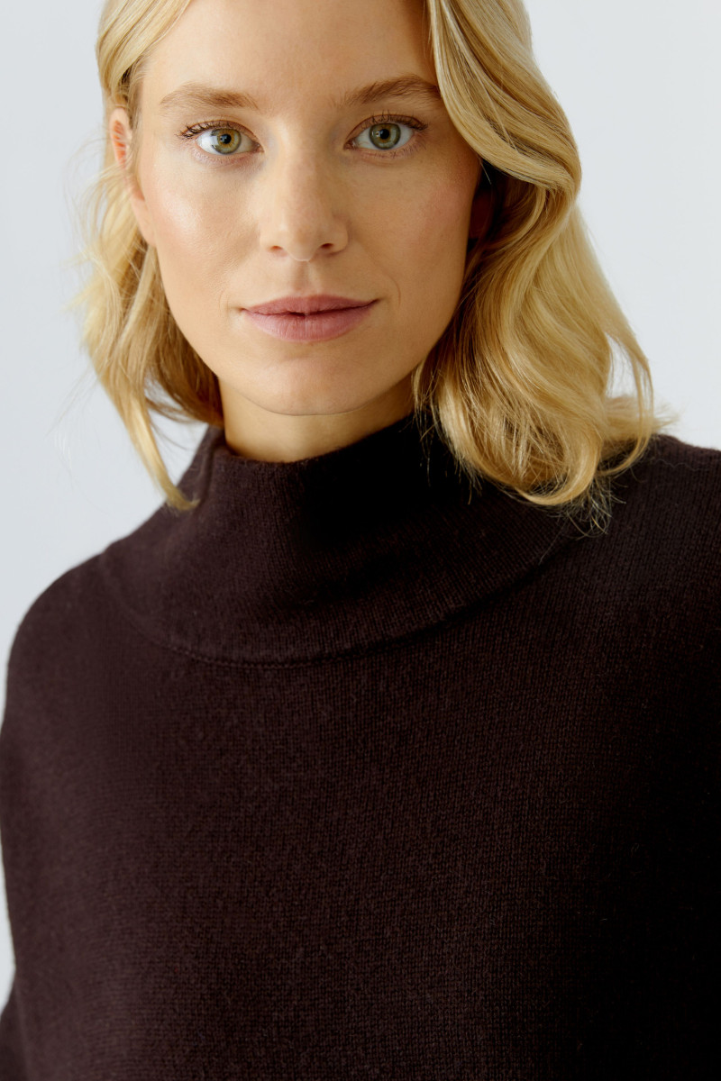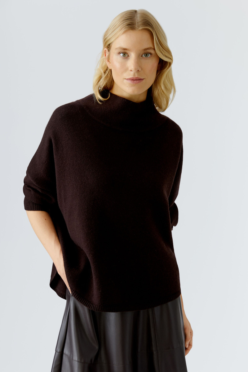 Weiche Garnmischung mit Wolle glatt gestrickt Oversized geschnitten, reguläre Länge Gedoppelter Stehkragen Stark überschnittene Schulter mit 7/8 Arm mit hohem Rippbündchen Gerundete Saumlinie | Länge bei Größe 36: 58cm