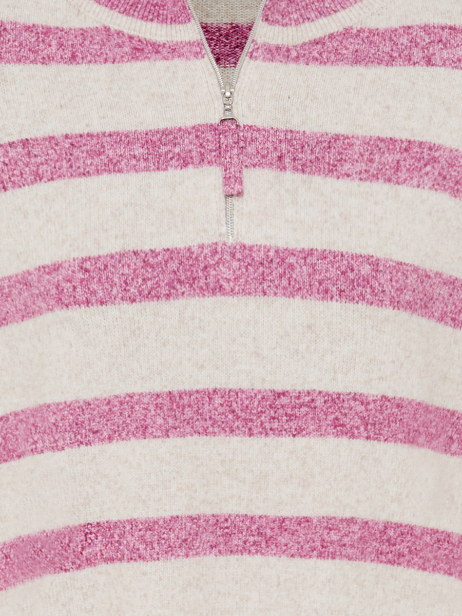 Ein sportiver Klassiker neu interpretiert: Dieser Troyer-Pullover setzt mit seinen markanten Blockstreifen moderne Akzente. Der kurze Reißverschluss und die überschnittenen Schultern sorgen für eine lässige Optik, während der hochwertige Viskose-Mix angenehm weich auf der Haut liegt. Ideal für unkomplizierte Everyday-Looks mit modischem Twist. Bonus: Dieses Produkt enthält LENZING™ ECOVERO™ Viskose, die aus kontrollierten Holzquellen gewonnen werden. LENZING™ und ECOVERO™ sind Marken der Lenzing AG. Länge ca. 60 cm.