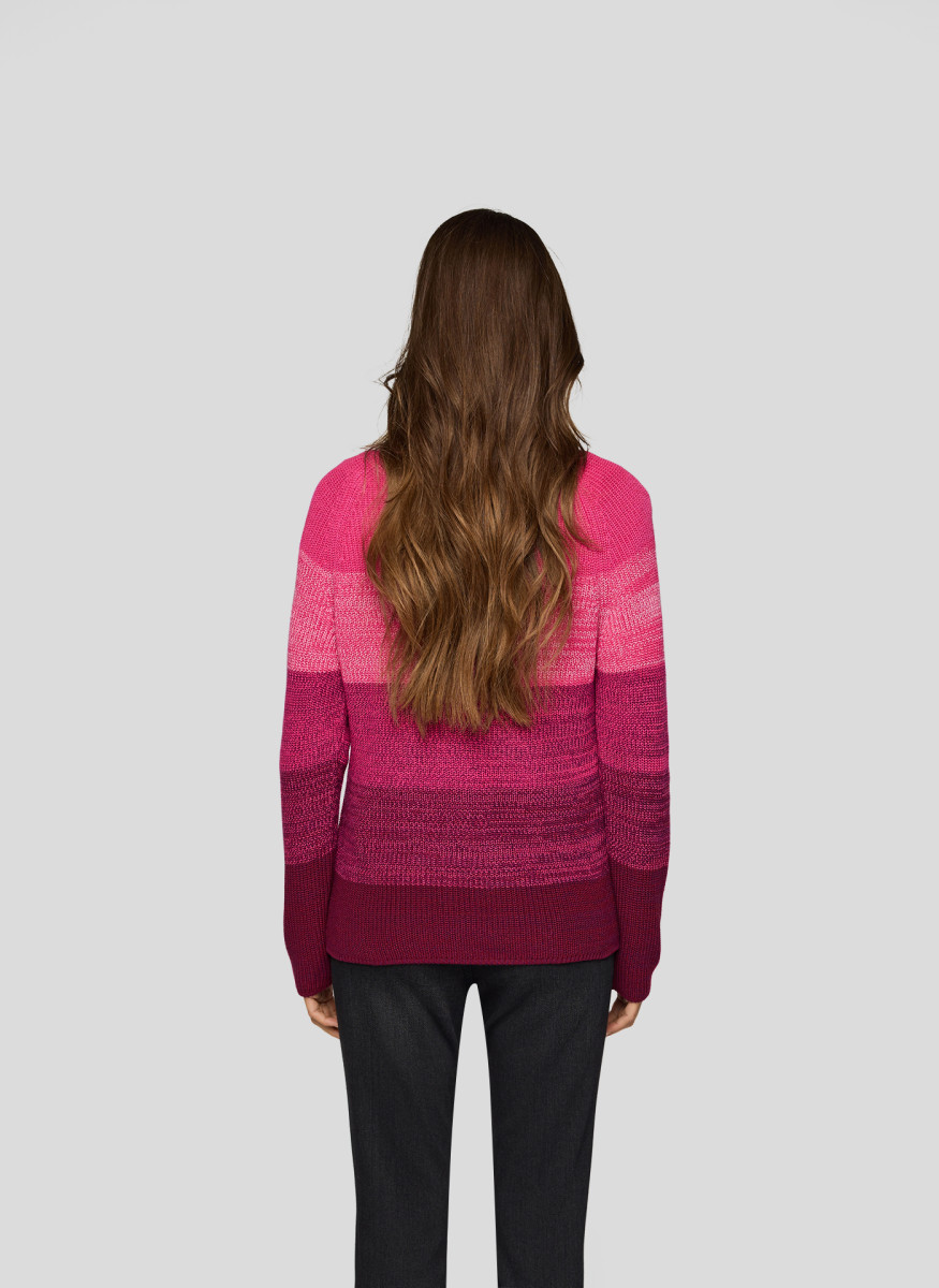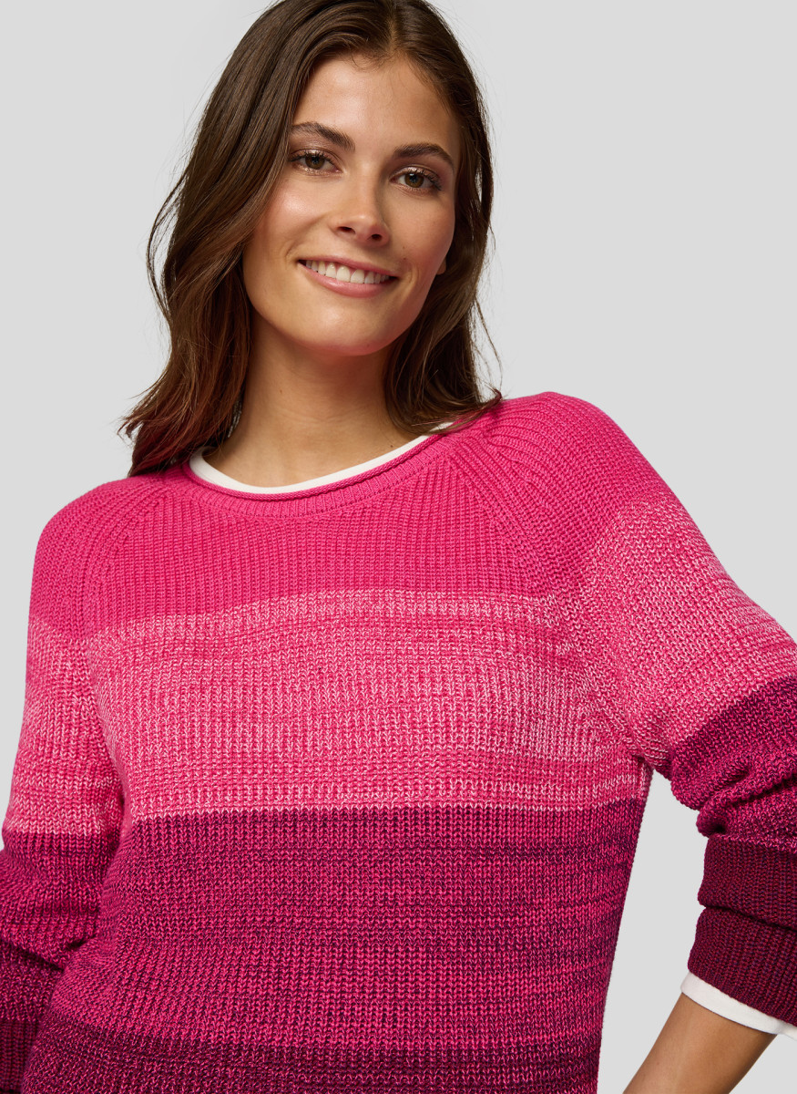 Dieser Pullover setzt auf Struktur und Verlauf: Ein sportlicher Rundhalsausschnitt und Raglanärmel treffen auf markante Strickstruktur mit modisch abgestuftem Farbverlauf. Die weiche Qualität mit hohem Baumwollanteil macht ihn pflegeleicht und angenehm zu tragen.