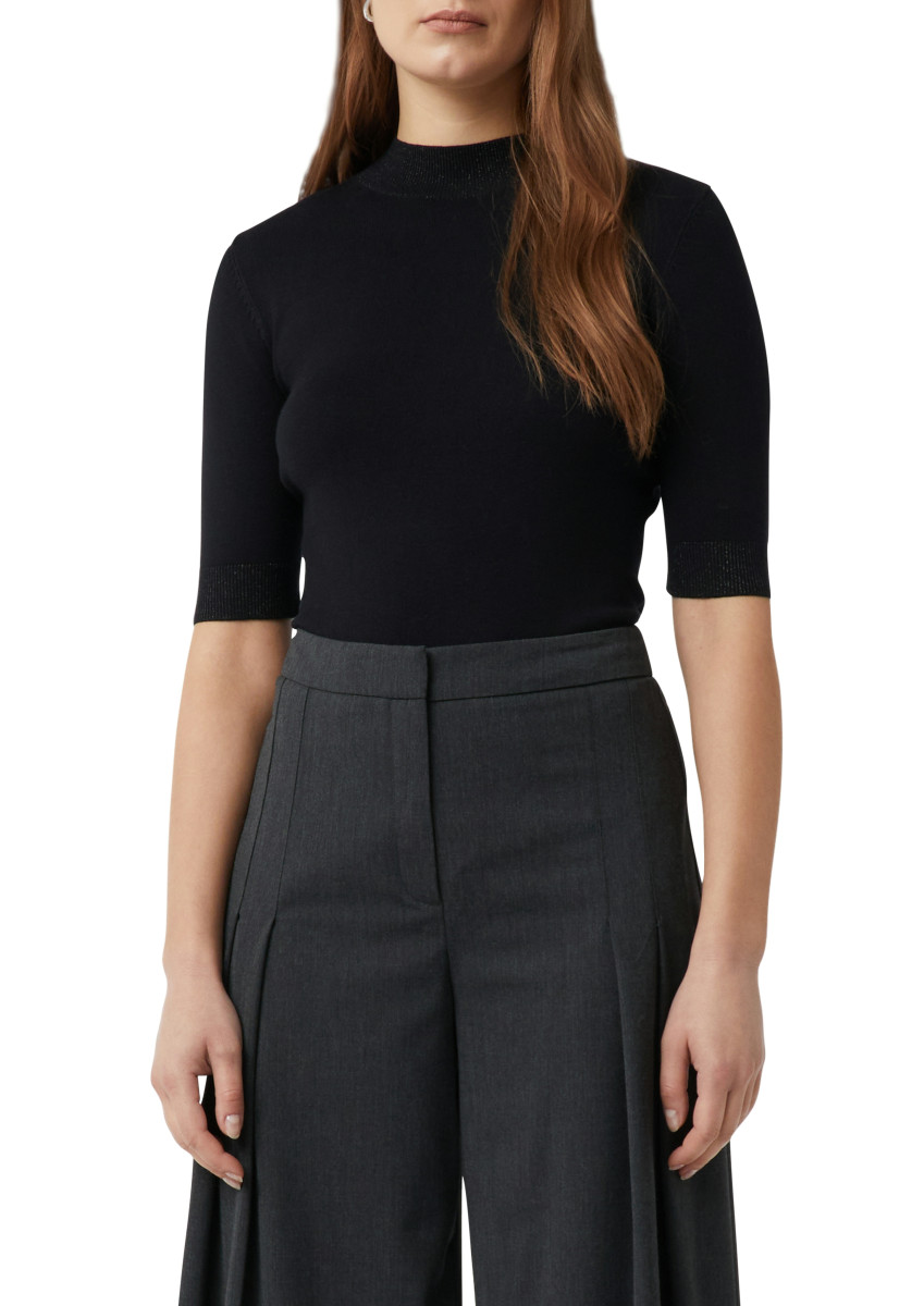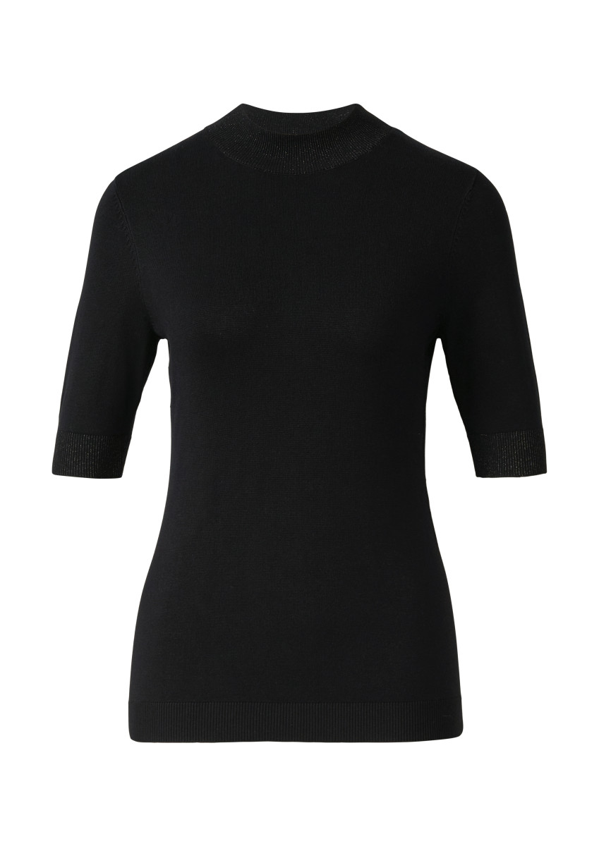 Glamouröser Auftritt garantiert: Dieser Strickpullover in Slim Fit vereint femininen Chic und Komfort. Der elegante Stehkragen und die halblangen Ärmel mit Rippbündchen kreieren eine raffinierte Silhouette, während dezente Glitzerdetails am Bund stilvolle Akzente setzen. Der weiche, elastische Feinstrick schmiegt sich angenehm an und bietet maximale Bewegungsfreiheit. Perfekt zum Updressen mit einer eleganten Hose oder lässig zur Jeans kombiniert – dieses vielseitige Essential bereichert Ihre Garderobe das ganze Jahr über.