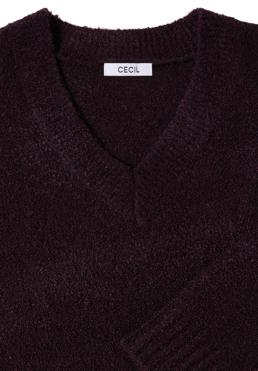 Der Bouclé Pullover von CECIL für Damen vereint weiche Struktur mit klassischem Design. Der V-Ausschnitt und Rippbündchen an den Ärmeln unterstreichen den femininen Stil, während die Bouclé-Qualität für extra Gemütlichkeit sorgt. Ein stilvoller Begleiter für kühlere Tage.