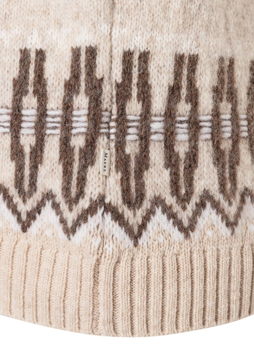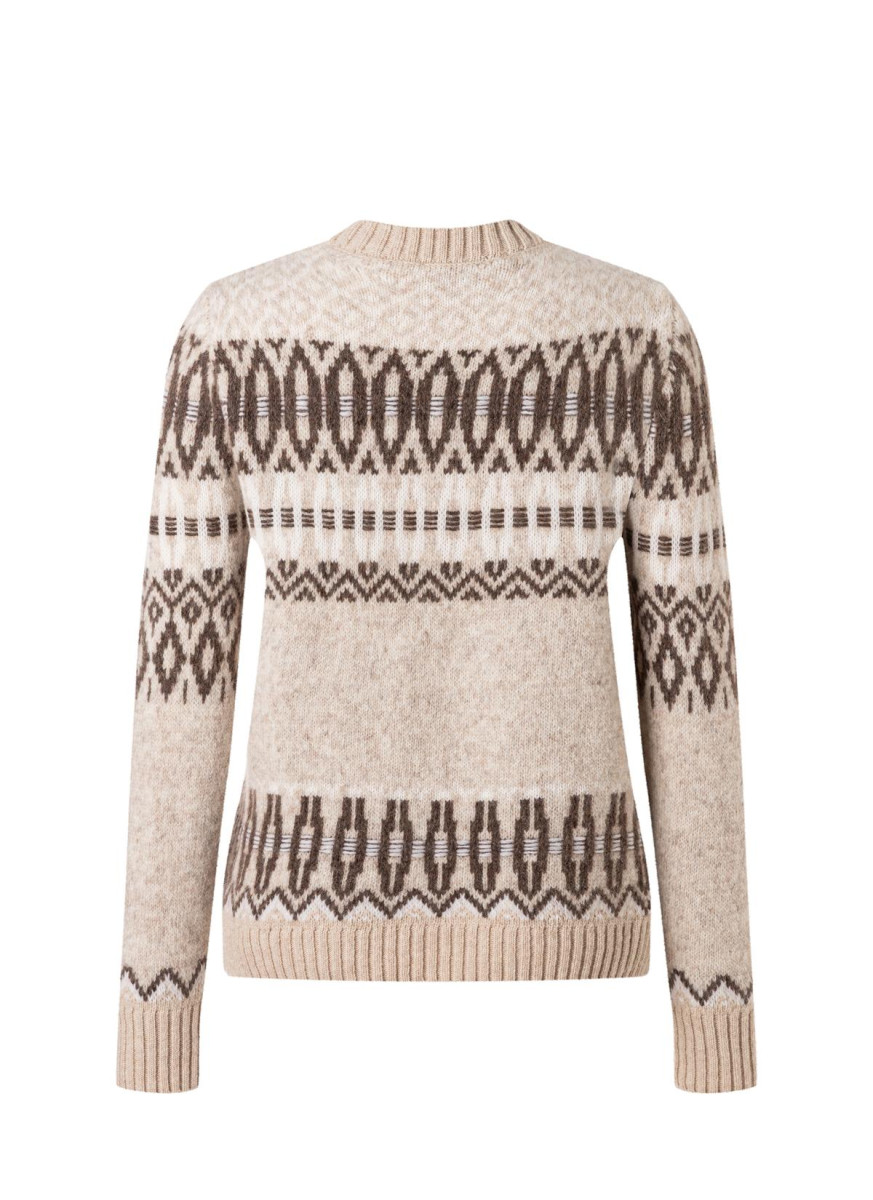 Der Rundhalspullover überzeugt mit einem ausdrucksstarken Jacquard-Muster und einem klassischen Regular Fit. Sein Design wirkt zugleich lässig und stilvoll und lässt sich vielseitig kombinieren. Gefertigt aus einer hochwertigen Wolle-Alpaka-Mischung besticht der Pullover durch seine besonders weiche Haptik, angenehme Wärme und sein leichtes Tragegefühl. Die atmungsaktiven Naturfasern regulieren die Temperatur und sorgen in jeder Situation für gleichbleibenden Komfort. Ein Modell, das dezente Eleganz mit spürbarer Materialqualität vereint.