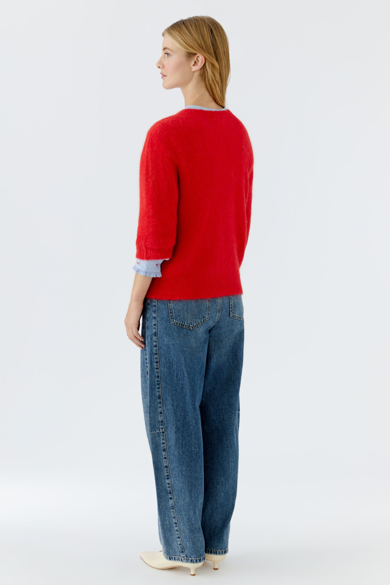 Super weiche, elastische Garnmischung mit Alpaka nahtlos gestrickt Lässig geschnitten, reguläre Länge Rundhals mit Blende Besondere Raglanform mit Minderungen, 3/4 Arm Herzintarsie, kontrastig Made in Italy | Länge bei Größe 36: 58cm