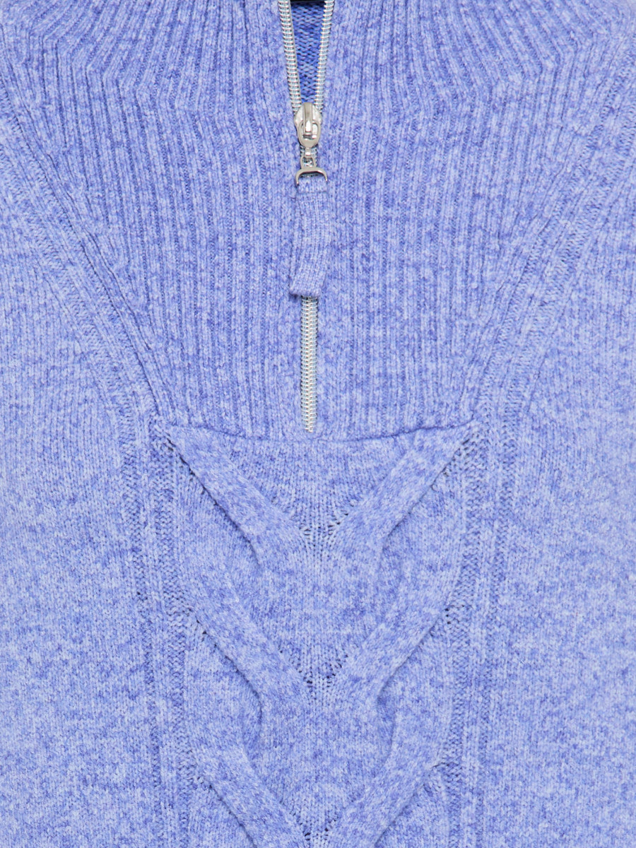 Ein Klassiker unter winterlich-warmen Kuschelpullovern: Mit seinem halblangen Reißverschluss und Stehkragen mit Rippstrickmuster ist dieser Pullover ein Teil mit Lieblingsstück-Potenzial. Das vertikal eingestrickte Zopfstrickmuster ist ein schönes Detail dieses gerade geschnittenen Pullovers in gerader Passform, genauso wie die superweiche Qualität, aus der er gefertigt ist.
