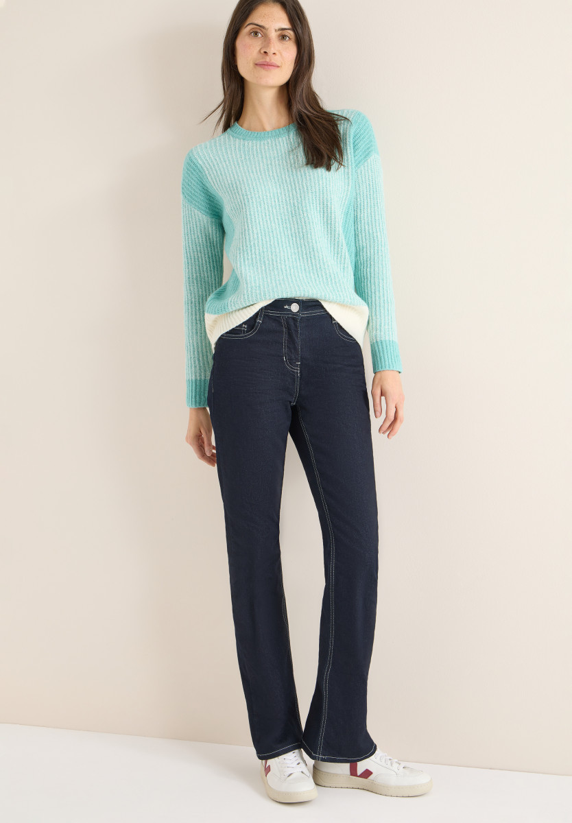 Der Mouliné Pullover von CECIL für Damen begeistert mit einem spannenden Strukturmix und trendigem Color Block Design. Der weiche Strick, der Rundhalsausschnitt und lange Ärmel machen ihn zum perfekten Begleiter für entspannte Casual-Outfits. Ein modischer Hingucker mit Wohlfühlfaktor. Strickpullover Strukturmix Color Block Muster Rundhalsausschnitt Langarm Material: 37% Baumwolle, 34% Polyacryl, 26% Polyester, 3% Elasthan