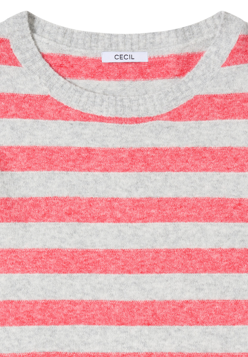 Der gestreifte Melange Pullover von CECIL für Damen kombiniert ein lebendiges Streifenmuster mit weichem Baumwollmix und gemütlichem Rundhalsausschnitt. Die Melange-Optik verleiht dem Look eine moderne Note. Ein vielseitiger Begleiter für entspannte und stilvolle Outfits. Rundhals Strickpullover Softer Baumwollmix Streifenmuster Melange-Optik Langarm