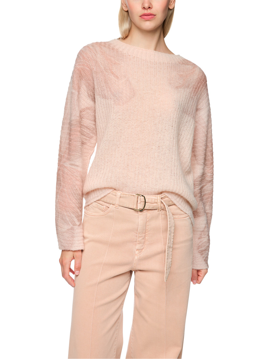 Strick-Pullover "Knitted in Germany" | Weicher Strickpullover aus Alpaka-, Woll- und Polyamid-Mix für ein angenehmes Tragegefühl. Die Ärmel sind mit zartem Inkjet-Blumenprint versehen, der dem Modell einen femininen Akzent verleiht. Locker geschnitten, ideal für elegante Layering-Looks im Alltag. Das Modell ist "Knitted in Germany": Das Verstricken der Garne auf hochmodernen Strickmaschinen und die Veredelung der Stoffe geschehen am Standort Deutschland. Locker geschnitten | Knitted in Germany | Rundhalsausschnitt|Softer Griff | Das Model ist 179 cm groß und trägt N3/38.
