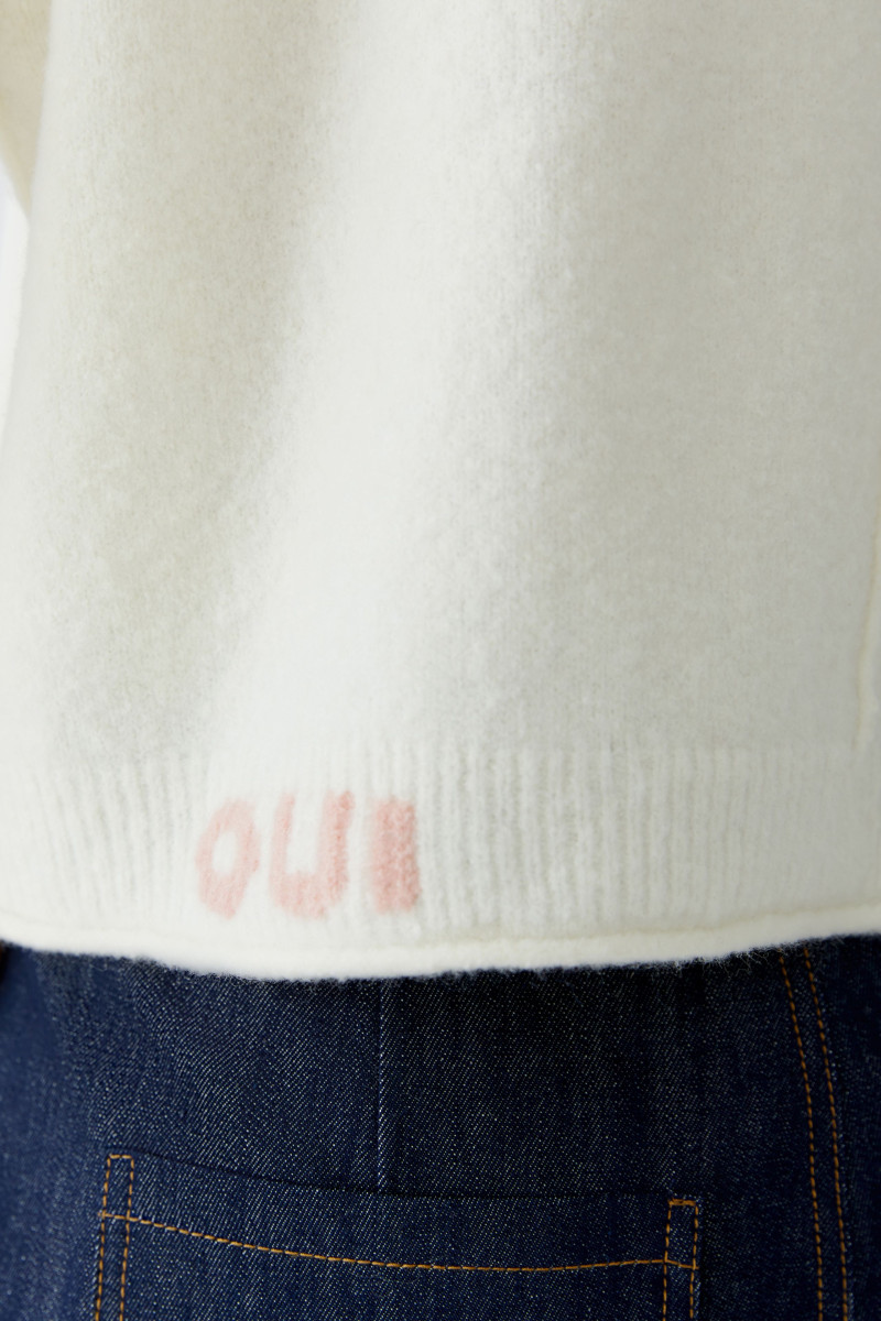 Elastisches Flauschgarn mit Baumwolle Boxy, oversized geschnitten, verkürzte Länge Rundhals mit Strickbündchen Stark überschnittene Schulter, fällt locker zum langen Halbarm Nach außen gelegte Nähte Rollkante am Ärmel und Saum * Länge bei Größe 36: 50cm