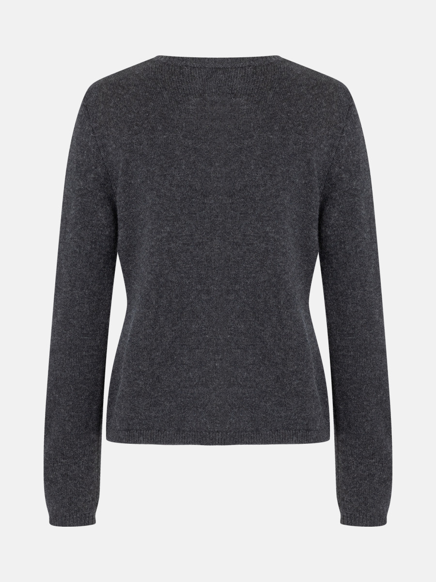 Diese charcoal-farbene Strickjacke von Lieblingsstück begeistert mit liebevollen Details und kuscheligem Tragekomfort. Der klassische Rundhalsausschnitt wird durch einen hochwertig verarbeiteten Schmuckbesatz mit funkelnden Ziersteinen zum echten Blickfang – ideal für alle, die auch im Alltag nicht auf ein wenig Glamour verzichten wollen.