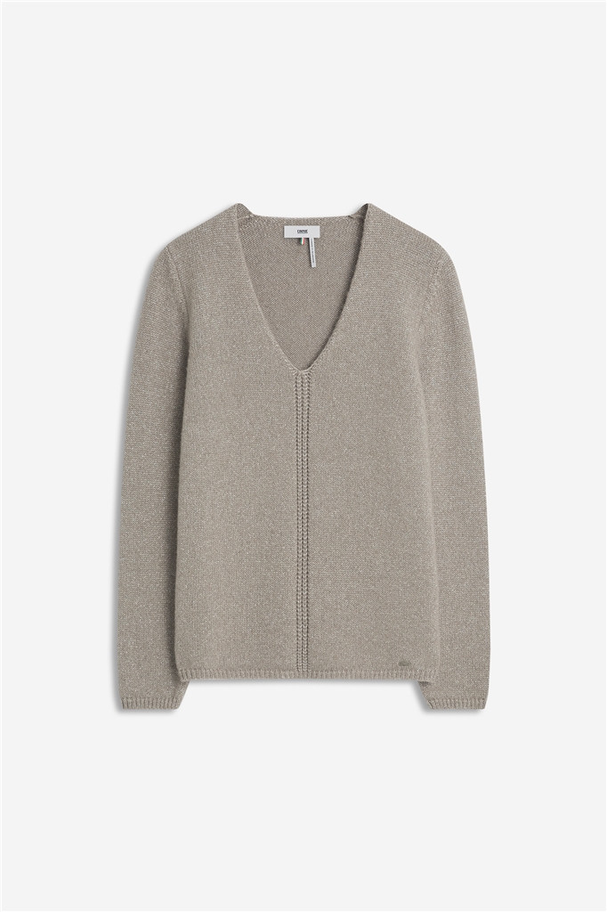 V-Ausschnitt | Langarm | Naht-Details | Strick | Schmale Rippbündchen | Woll-Mix
