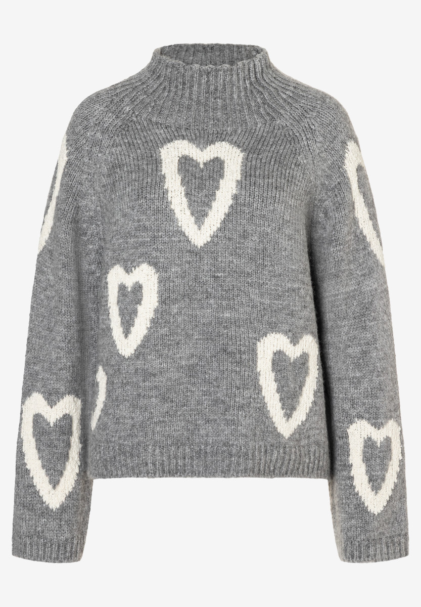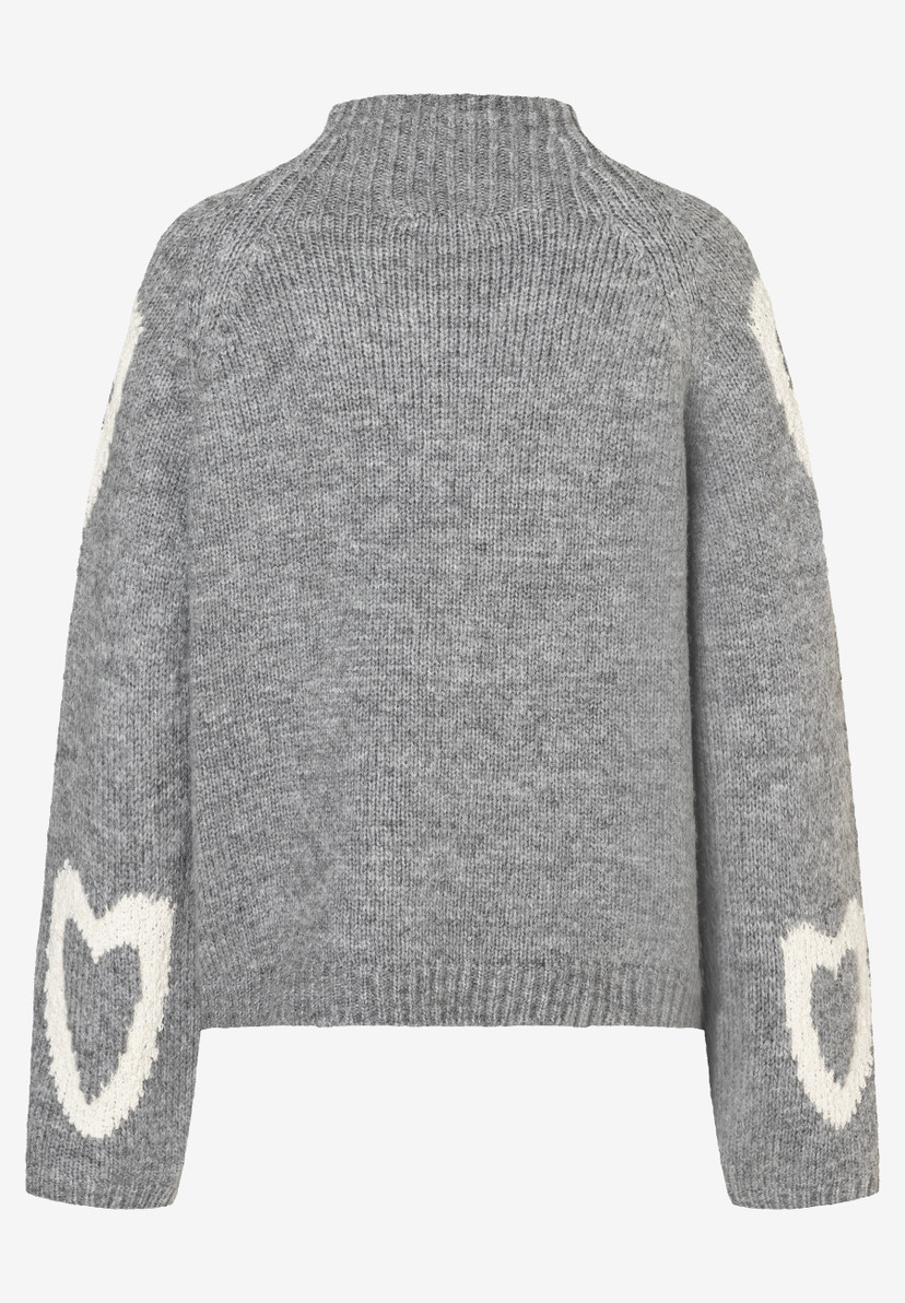 Lockere, weite Form | Turtleneck in Rippenstrick | Raglan-Ärmel | Eingestrickte Herzen auf der Front | Material-Mix