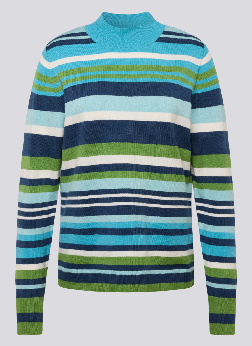 Dieser Pullover kombiniert angenehmen Tragekomfort mit einem frischen Look. Der Stehkragen sorgt für ein klares Finish, während die harmonischen Streifen dem Design Bewegung verleihen. Dank der hochwertigen Materialmischung aus Modal, Polyacryl und Polyamid trägt sich der Feinstrick weich und formstabil zugleich. Ein vielseitiges Modell für entspannte Freizeitoutfits. Bequemer Feinstrick aus Modal-Mix. Stehkragen mit formstabilem Abschluss. Frisches Streifenmuster in gedeckten Farben. Gerader Schnitt mit angenehmem Sitz. Vielseitig kombinierbar für Alltag und Freizeit.