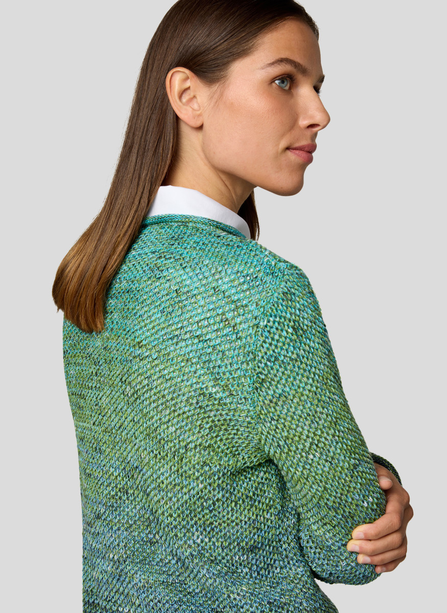 Der Rundhalspullover begeistert mit meliertem Farbspiel und strukturiertem Strickbild. Die leicht verkürzte Form und der angenehm griffige Materialmix unterstreichen den modernen Charakter des Designs. Ein idealer Kombipartner für legere Outfits mit Jeans oder Cordhose. Strukturierter Grobstrick. Melierter Farbeffekt. Gerader Schnitt. Rundhalsausschnitt. Griffiger Baumwollmix.