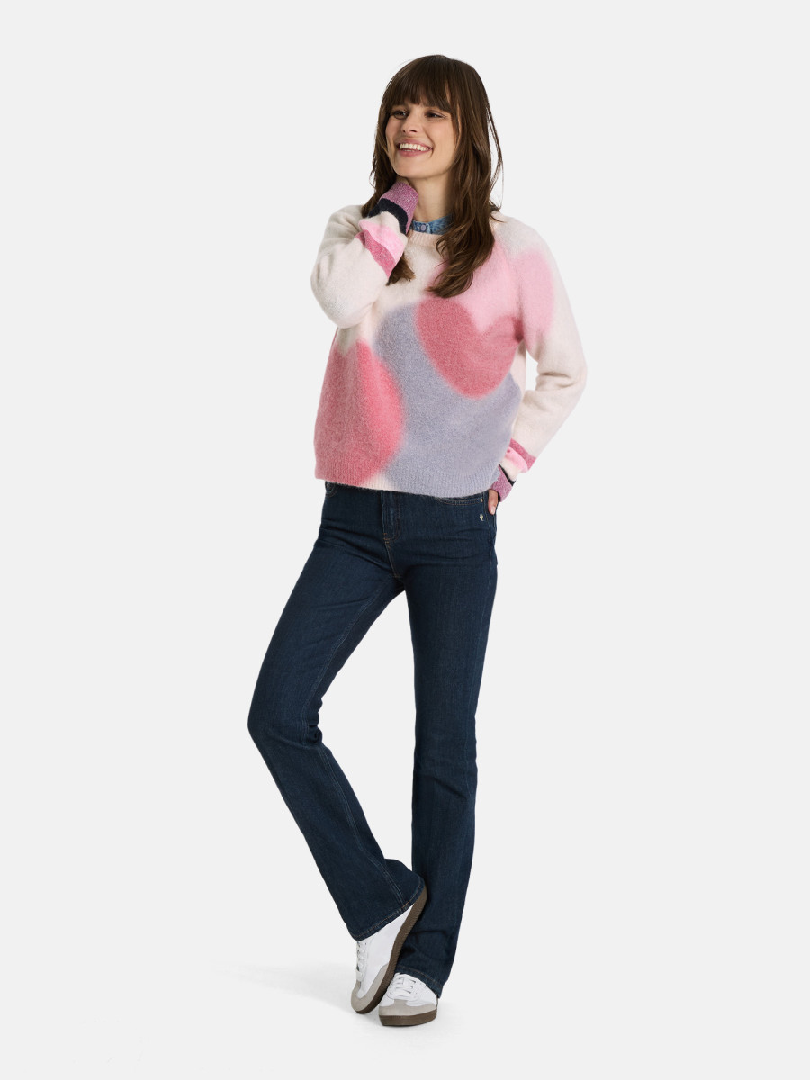 Ein echtes Highlight für kühle Tage: Dieser Pullover von LIEBLINGSSTÜCK überzeugt mit seinem verspielten Design in sanften Pastelltönen und maximalem Kuschelfaktor. Die großen, weichen Farbverläufe in Rosa, Flieder und Pink verleihen dem Modell einen femininen, modernen Touch, der sofort ins Auge fällt.