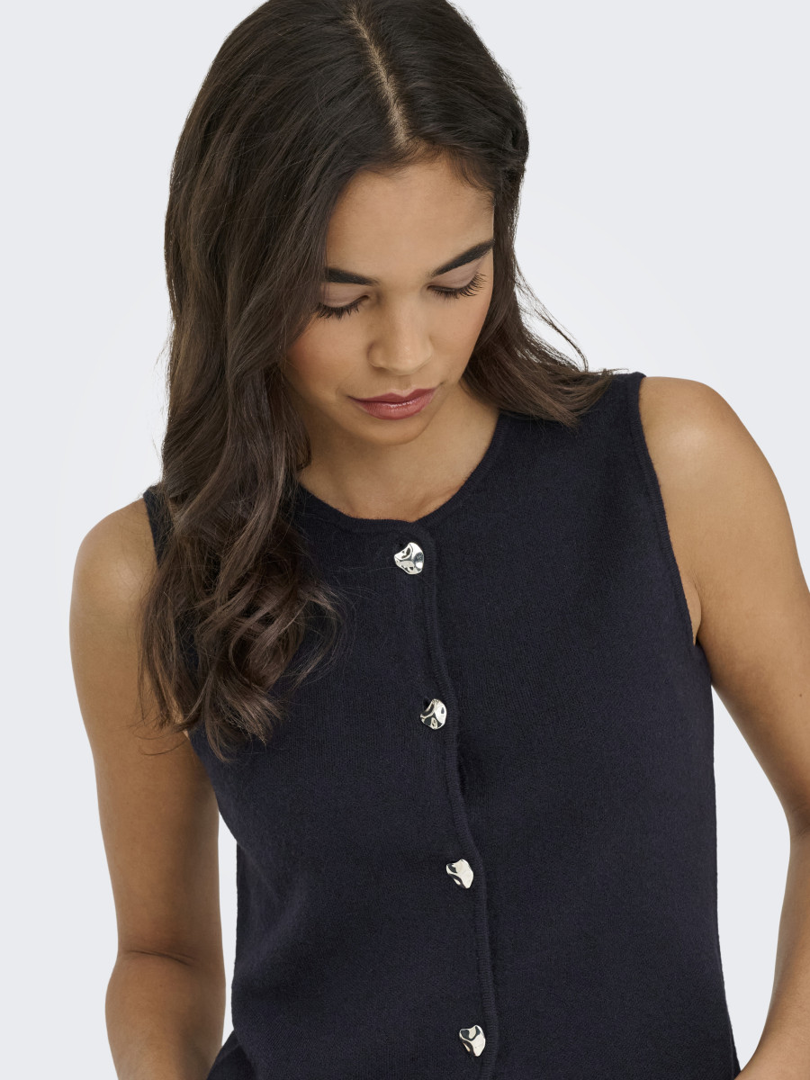 Lief.-Art-Nr: 15360507-ONLIBI BUTTON SL VEST CC KNTMaterial: 50% Viskose, 27% Nylon, 23% Polyester