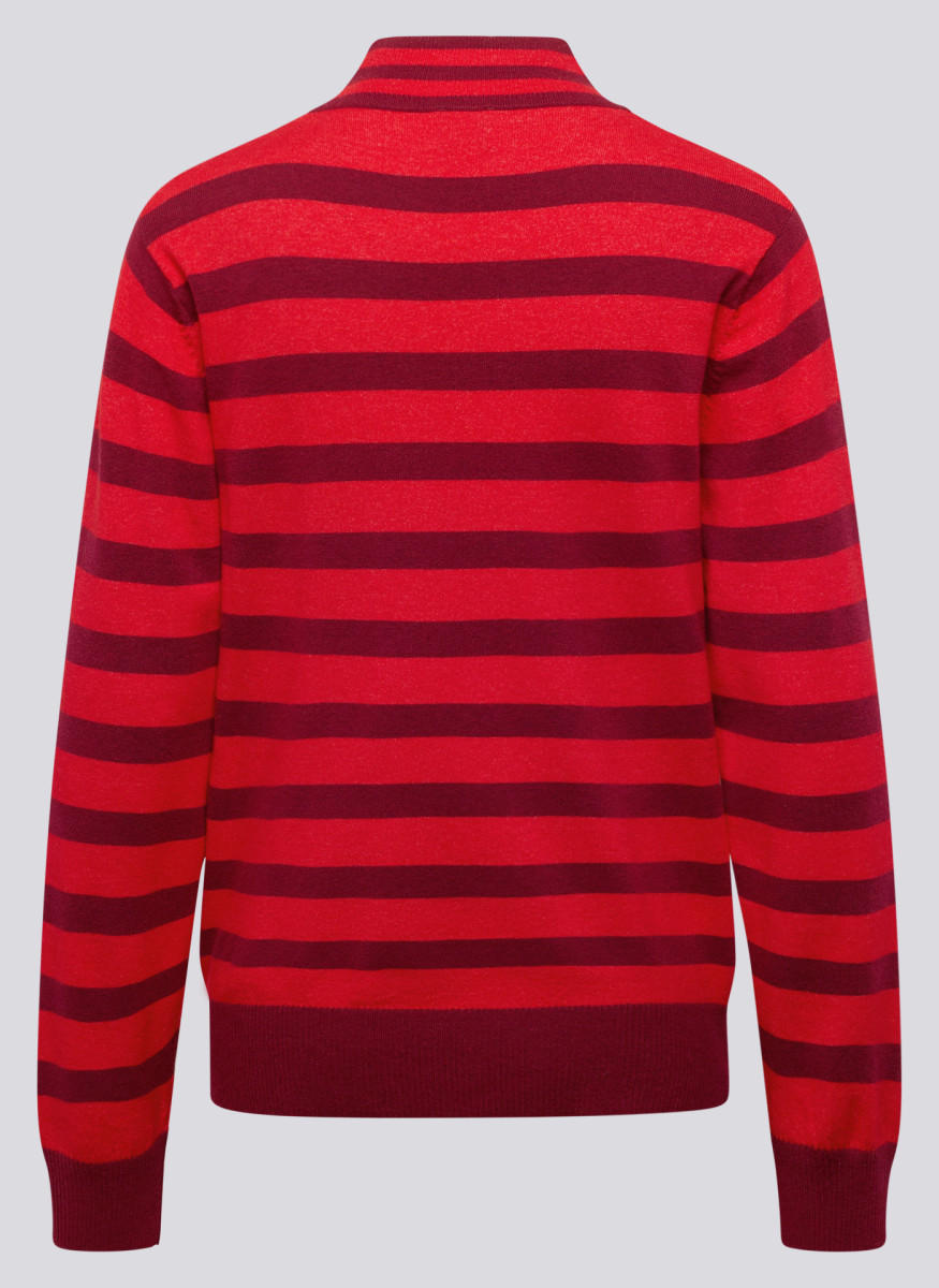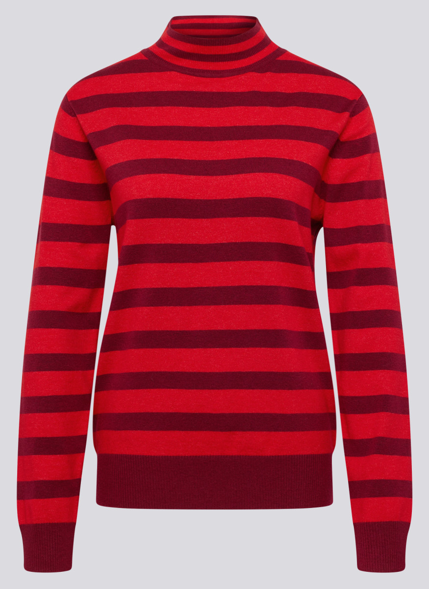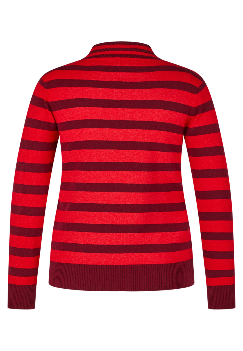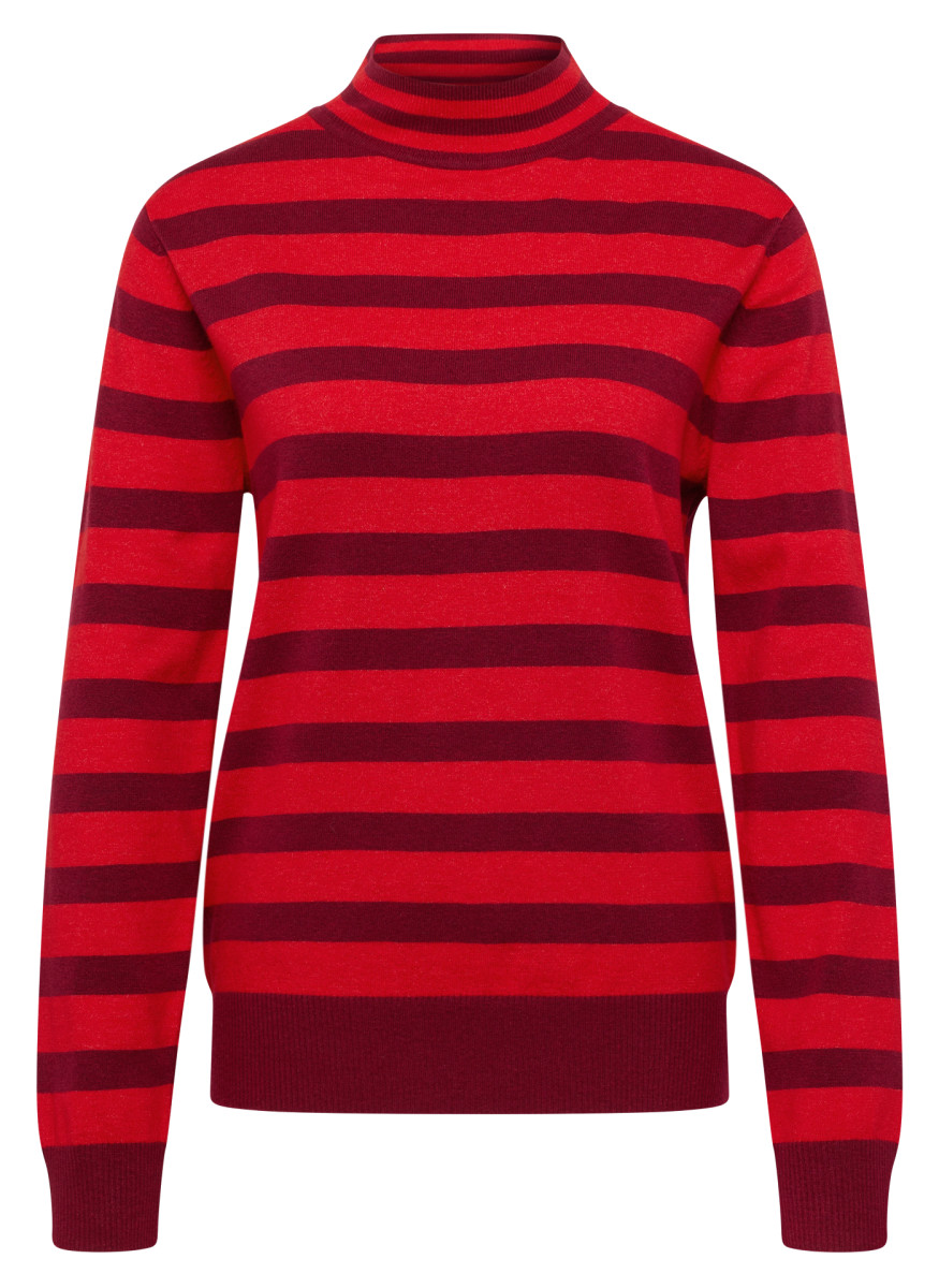 Ein sportiv-eleganter Klassiker: Der Pullover im Ringeldesign überzeugt mit weichem Griff und angenehmem Tragegefühl. Der fein gerippte Stehkragen und die Bündchen setzen in Kontrastfarbe Akzente. Dank der bequemen Passform lässt er sich vielseitig kombinieren _ ob zu Jeans, Stoffhose oder Rock, dieser Pullover sorgt für einen frischen Look. Feinstrick mit weichem Griff. Kontrastfarbener Stehkragen. Elastische Rippbündchen.