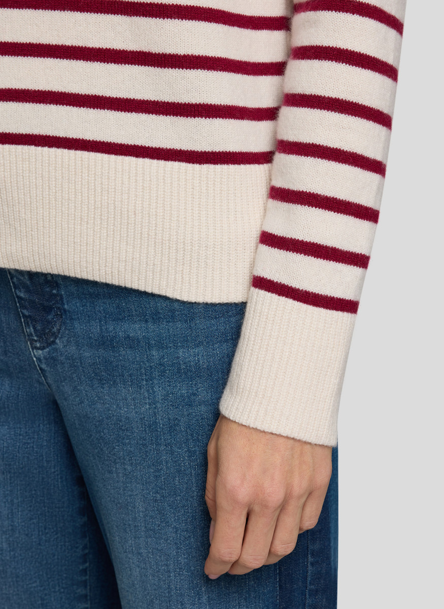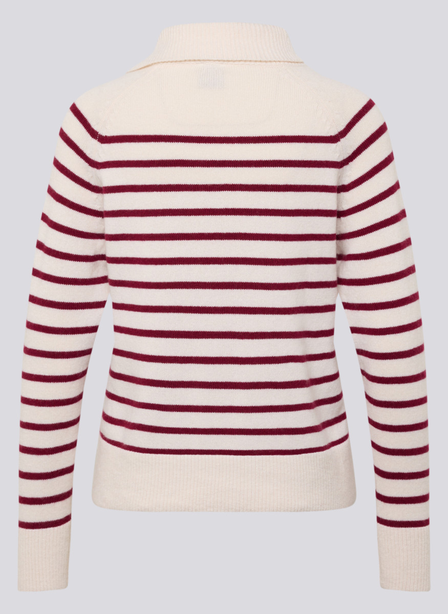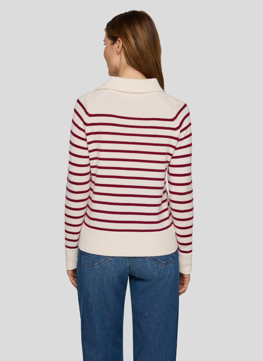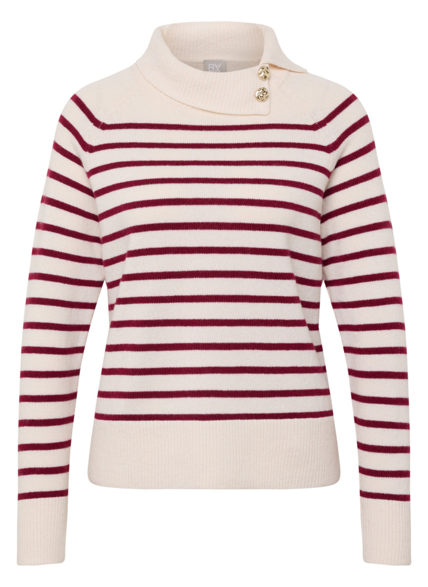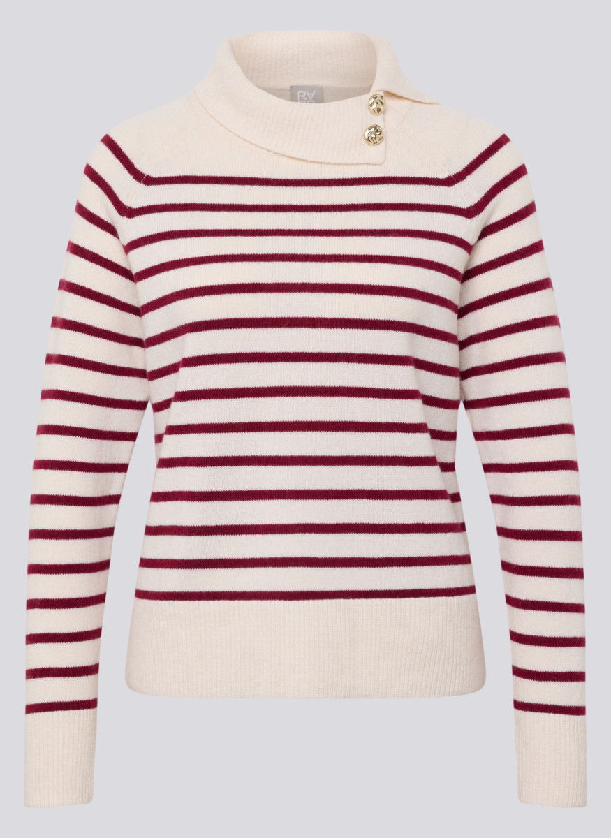 Dieser Feinstrickpullover kombiniert klassisches Streifendesign mit einem modischen Kragen, der durch goldfarbene Knöpfe raffiniert betont wird. Der hochwertige Wollanteil sorgt für angenehme Wärme und ein weiches Tragegefühl. Die Rippenabschlüsse runden den bequemen Schnitt stilsicher ab _ ideal für kühle Tage mit modischem Anspruch. Wärmende Wollmischung. Dekorative Knöpfe am Kragen. Feines Streifenmuster. Bequemer gerader Schnitt. Rippenabschlüsse an Saum und Ärmeln.