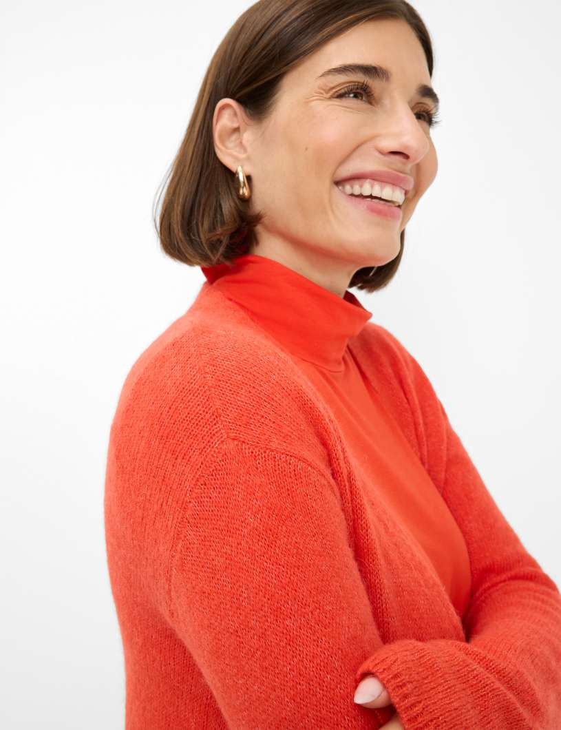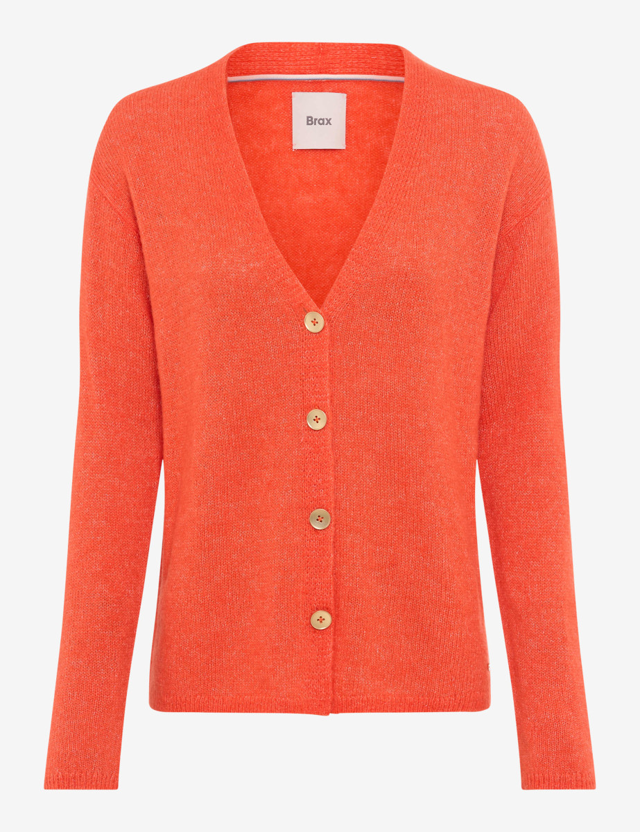 Ein stilvoller Begleiter für die kalte Jahreszeit: Die Strickjacke im STYLE ALICIA vereint zeitlose Eleganz mit hochwertiger Verarbeitung und wird so zum unverzichtbaren Highlight Ihrer Herbst- und Wintergarderobe. Die gerade, schmeichelhafte Silhouette und der klassische V-Ausschnitt verleihen diesem Cardigan eine feminine Note, während die markante Knopfleiste und feine Minderungsdetails für das gewisse Etwas sorgen. Gefertigt aus edlem Single Jersey im luxuriösen Alpaka-Mix begeistert die Jacke mit einer besonders weichen Haptik und hervorragenden wärmenden Eigenschaften – ein perfekter Schutz an frostigen Tagen. Der Materialmix aus Polyamid, Alpaka und Wolle überzeugt durch Leichtigkeit, Langlebigkeit und Formstabilität, die höchsten Tragekomfort garantieren. Diese Strickjacke ist wie gemacht für stilbewusste Frauen, die Qualität und Design zu schätzen wissen.