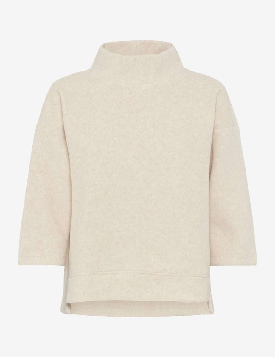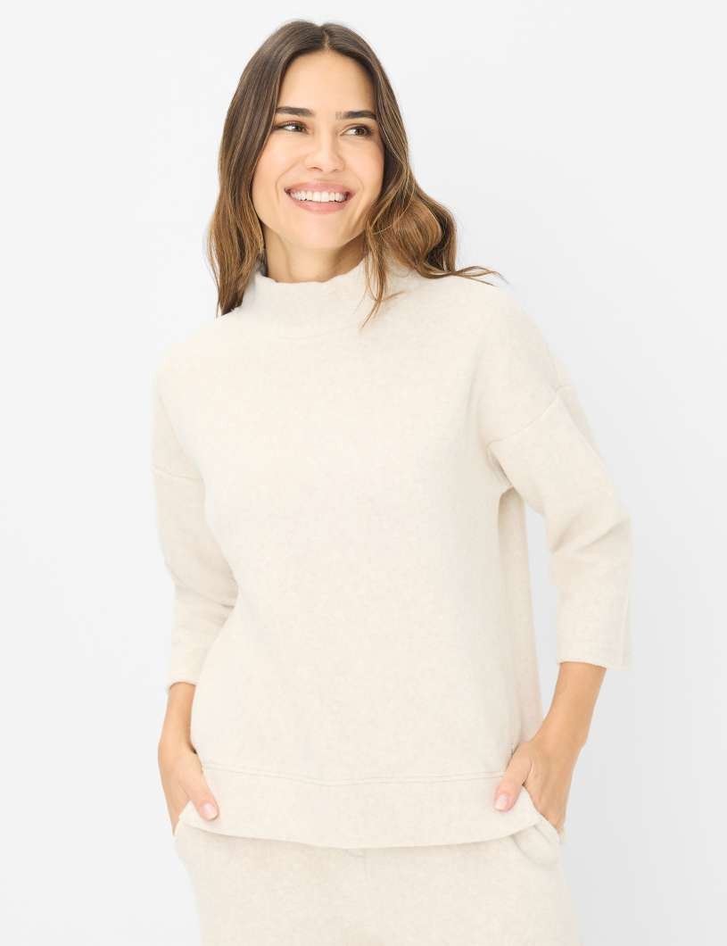 Lässige Modernität trifft auf Komfort: Das Sweatshirt im STYLE BO L steht für einen entspannten und zugleich stilbewussten Look. Mit seiner oversized Silhouette, den überschnittenen Schultern sowie dem angesagten Stehkragen vereint diesem Sweater modische Nonchalance mit markanter Linienführung. Raffinierte Details wie feine Saumschlitze, einer femininen 3/4-Ärmellänge und ein spannender Melange-Effekt machen den Damen-Pullover zum vielseitigen Highlight für urbane Outfits. Der Mix aus hautsympathischer Baumwolle und funktionalem Polyester sorgt für angenehmen Tragekomfort und bewahrt die Form auch nach vielen Wäschen. Dank der hochwertigen Jersey-Qualität erhält der Sweater eine glatte, geschmeidige Oberfläche, bleibt strapazierfähig und begeistert mit trendsicherer Optik.