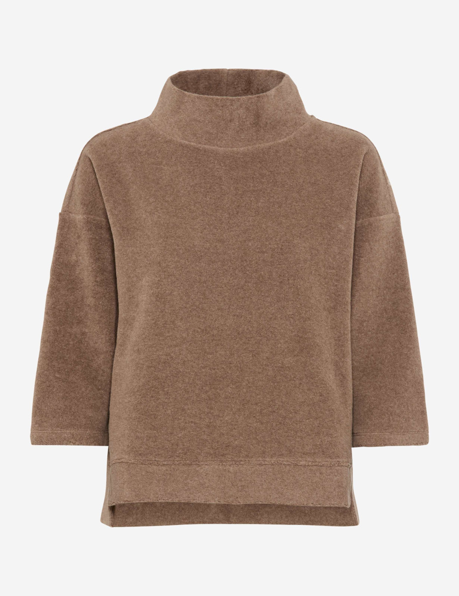 Lässige Modernität trifft auf Komfort: Das Sweatshirt im STYLE BO L steht für einen entspannten und zugleich stilbewussten Look. Mit seiner oversized Silhouette, den überschnittenen Schultern sowie dem angesagten Stehkragen vereint diesem Sweater modische Nonchalance mit markanter Linienführung. Raffinierte Details wie feine Saumschlitze, einer femininen 3/4-Ärmellänge und ein spannender Melange-Effekt machen den Damen-Pullover zum vielseitigen Highlight für urbane Outfits. Der Mix aus hautsympathischer Baumwolle und funktionalem Polyester sorgt für angenehmen Tragekomfort und bewahrt die Form auch nach vielen Wäschen. Dank der hochwertigen Jersey-Qualität erhält der Sweater eine glatte, geschmeidige Oberfläche, bleibt strapazierfähig und begeistert mit trendsicherer Optik.